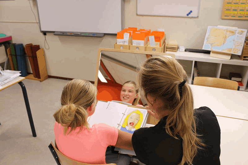 Gefertigt aus hochwertigen, nachhaltigen Materialien in den Niederlanden, vereint dieser Spiegel Funktionalität mit Sicherheit. Der Rahmen aus FSC-zertifiziertem Holz fasst ein spezielles Sicherheitsglas ein, das auch im lebhaften Therapiealltag zuverlässigen Schutz bietet. Dank seines cleveren Designs lässt sich der Spiegel in vier verschiedene Positionen verstellen. Dies ermöglicht eine flexible Nutzung: Ob direktes Gegenübersitzen für Partnerübungen oder individuelles Training – der Study Buddy passt sich der Situation an. Sein leichtes, schlankes Design macht ihn zudem zum idealen Begleiter für mobile Therapeuten oder für den flexiblen Einsatz in verschiedenen Räumen einer Schule oder Kita.