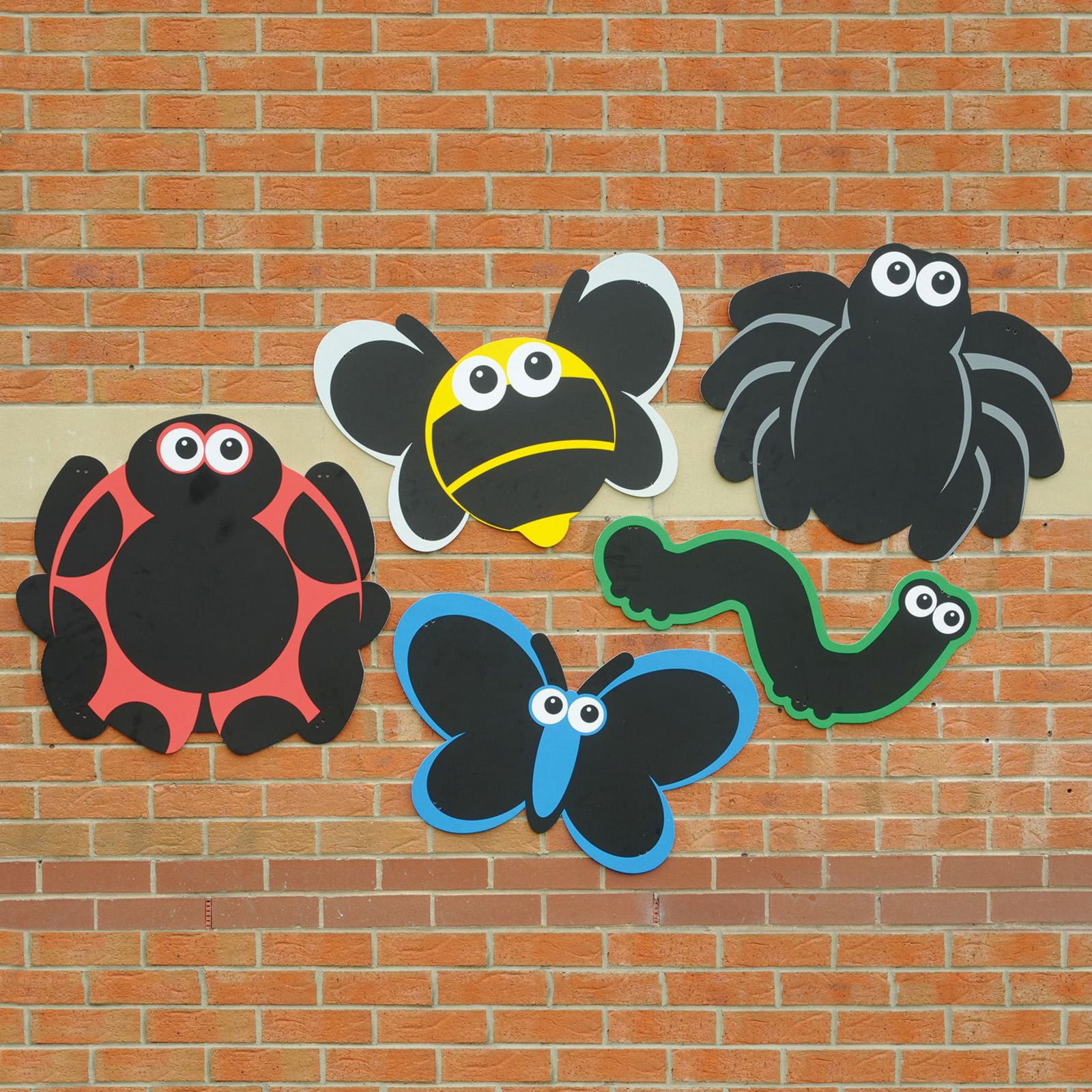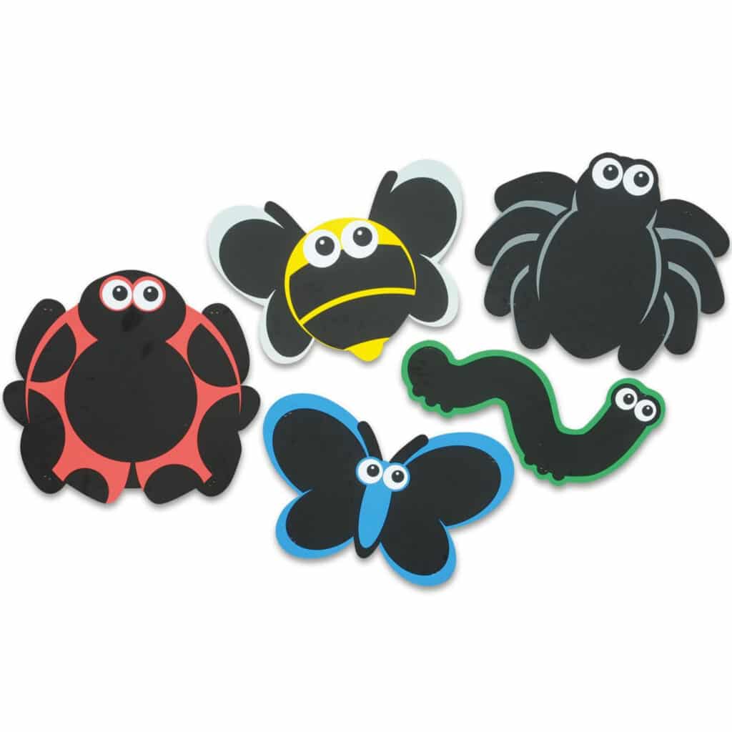 - 5 Tafeln (Marienkäfer, Raupe, Spinne, Schmetterling, Biene)
