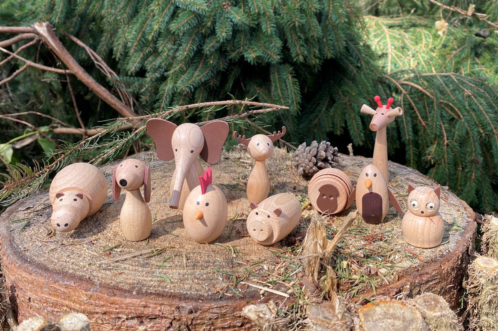 - Nachhaltige Materialien: Unsere Holztiere bestehen aus robustem, ökologisch gewonnenem Buchenholz – einem natürlichen und biologisch abbaubaren Material.