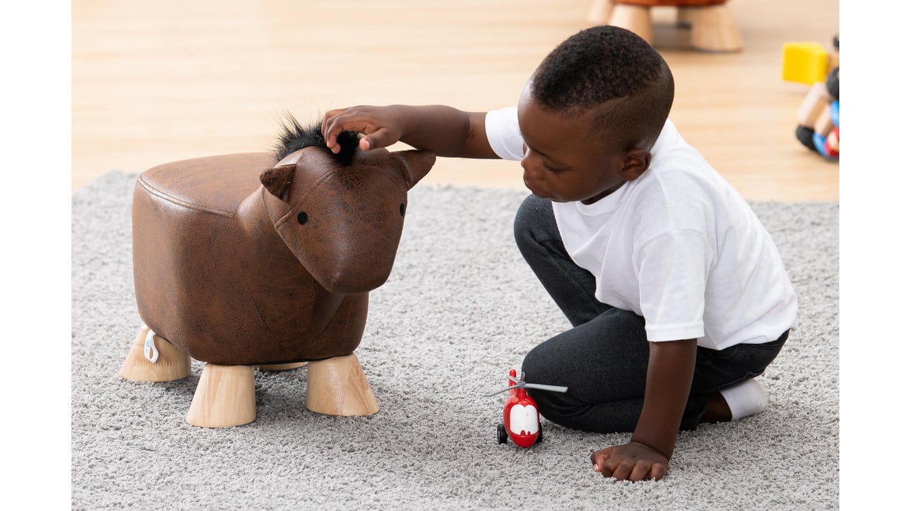 Der Pferd-Hocker ist ideal für alle kleinen Reiterinnen und Reiter. Mit einem Gesamtgewicht von 2,4 kg bietet er den perfekten Platz, um die Abenteuer des „Cowboys und Indianers” nachzuspielen oder einfach nur in die Fantasiewelt der Pferde und Ponys einzutauchen. Kinder lieben es, auf ihm zu sitzen, während sie Geschichten von ihrem Lieblingspferd erzählen.