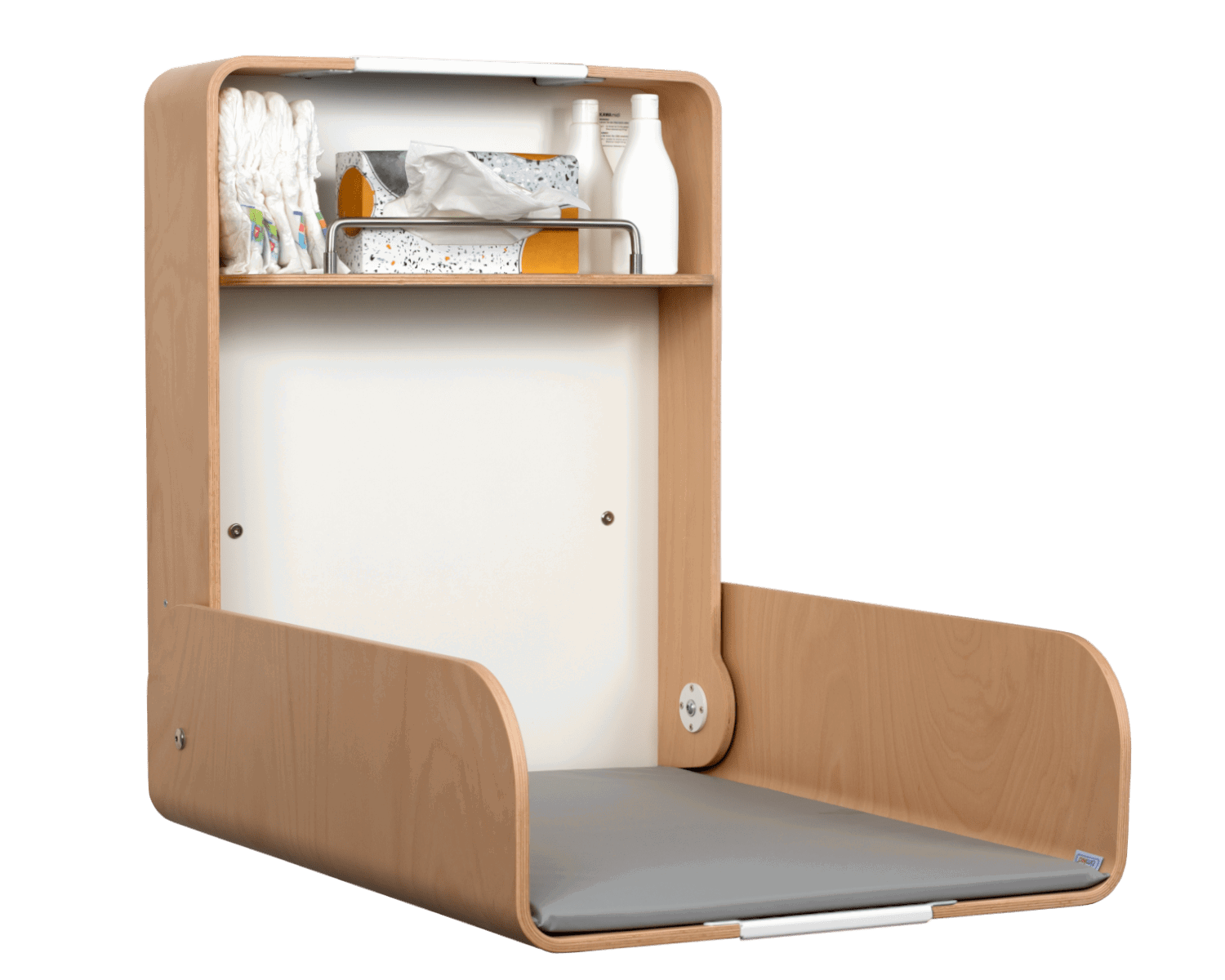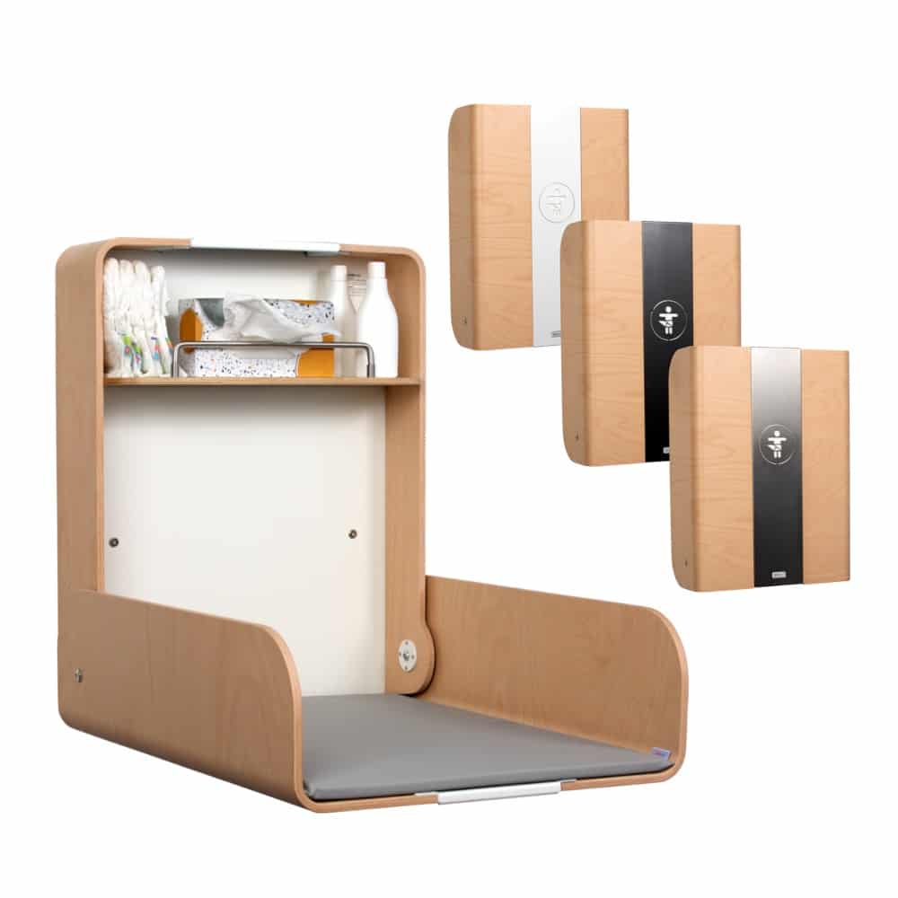 Ähnlich wie der Kawamaxi ist dies ein klappbarer Wandwickeltisch mit hohem Seitenschutzaus extra belastbarem Formholz, mit unterschiedlichen beschichteten Oberflächen und einem Metallmittelteil in verschiedener Farbgebung. Ein garantiert haltbares und langlebiges Produkt.