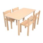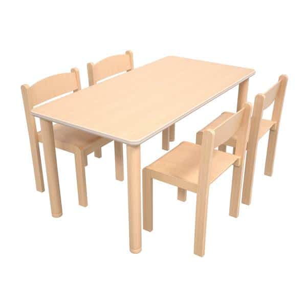 Tisch Flexi 120×60 cm HPL Buche mit Stühlen Philip – Sitzhöhe: 35 cm