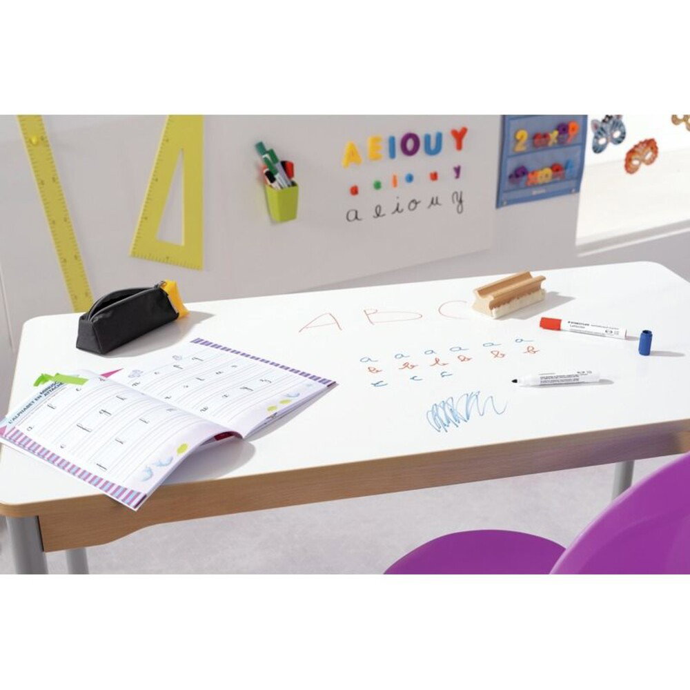 - Interaktives Lernen: Die sicher befestigte, trocken abwischbare Tischplatte fördert die Kreativität und reduziert den Papierverbrauch enorm.