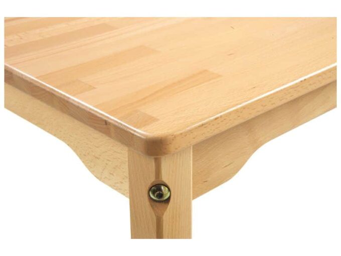 • Höhere Qualität: Tischplatte mit einer Dicke von 19 mm aus massivem Buchenholz mit 3 Lackschichten Rahmen aus massivem Buchenholz Abgerundete Kanten für mehr Sicherheit Tischbeine aus lackiertem Buchenholz, mit Gleiter, um den Boden zu schonen und Lärm zu reduzieren Sichere und sehr einfache Montage der Beine, verstärkt durch doppelte Verschraubung