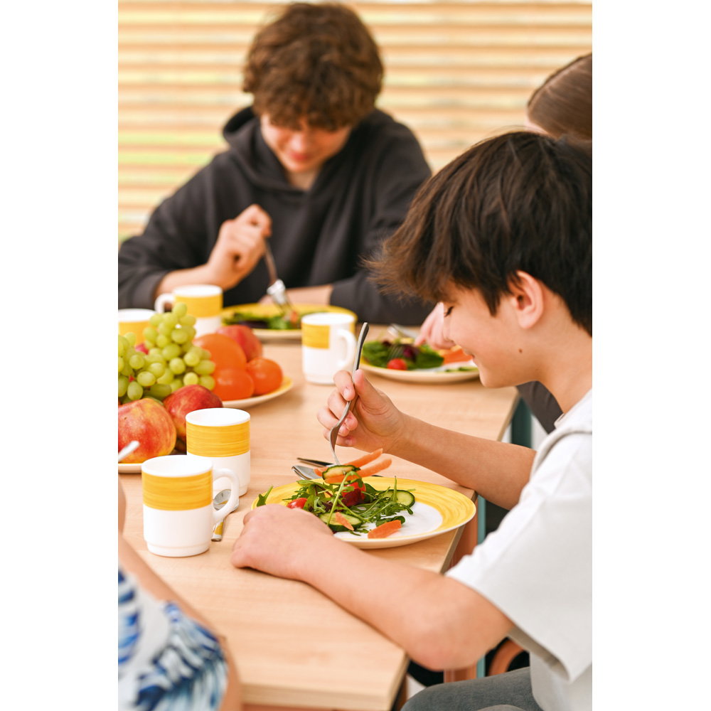 Dieses Set der Größe 6 richtet sich speziell an Jugendliche und Erwachsene mit einer mittleren Körpergröße von etwa 180 Zentimetern. Das sanfte Ahorn-Dekor der Tischplatte verschmilzt harmonisch mit den frischen, apricotfarbenen Elementen der Stuhl- und Tischgestelle. Diese farbliche Akzentuierung bringt eine warme und motivierende Atmosphäre in jeden Raum. Gleichzeitig garantieren die robusten Materialien eine lange Lebensdauer, selbst bei intensiver täglicher Nutzung im professionellen Bildungsalltag.