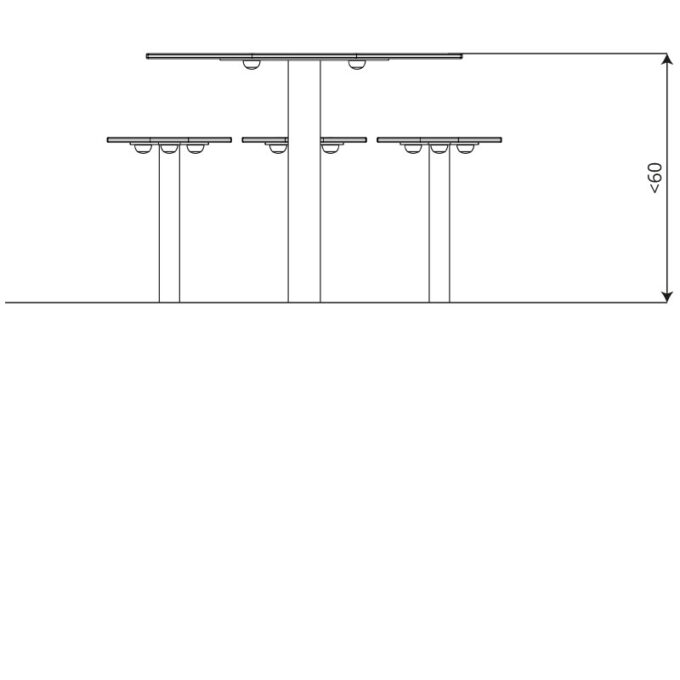 - Verankerung auf ebener Fläche, 80/70/60 cm tief;