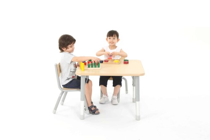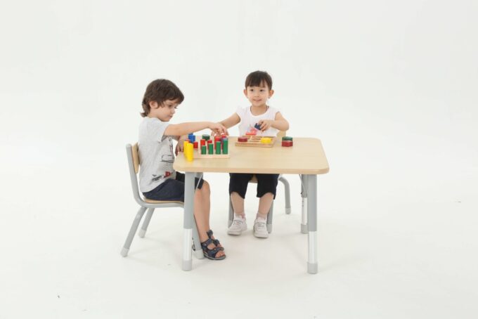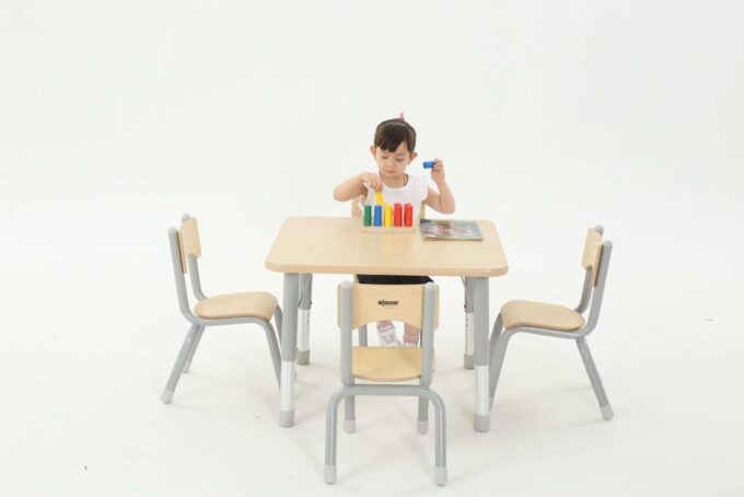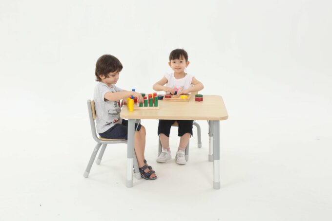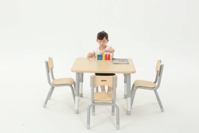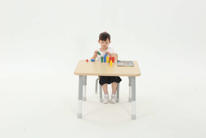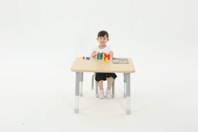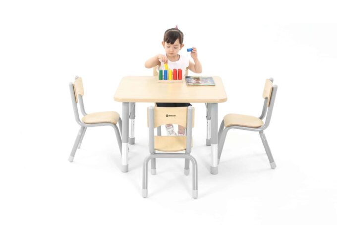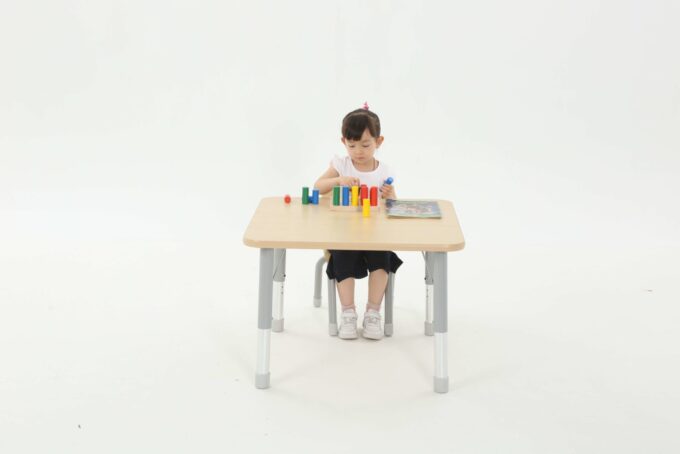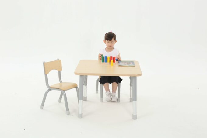 - Durch die flexible Höhenverstellung lässt sich der Tisch leicht an unterschiedliche Altersgruppen anpassen.