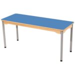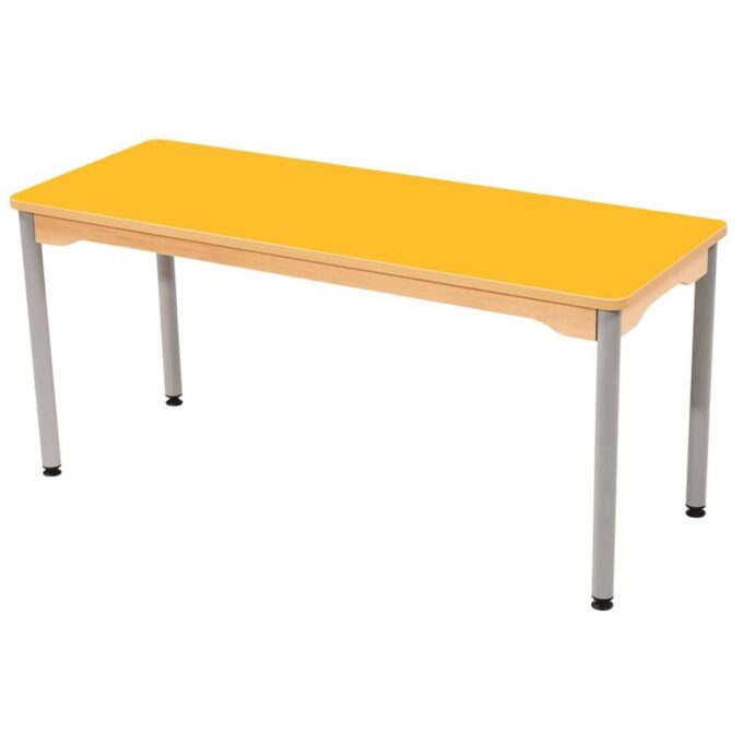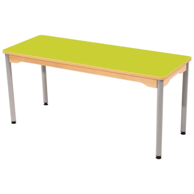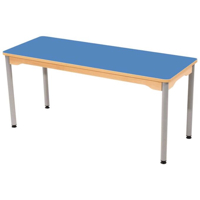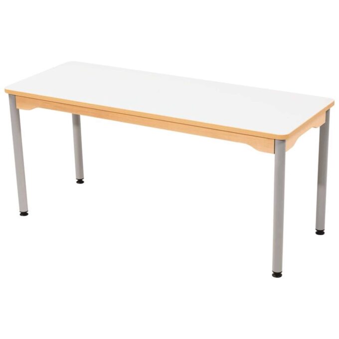 Tisch rechteckig 130×50 cm – mit beschichteter Tischplatte mit grauen Beinen aus Metall für Kindergarten und Krippe