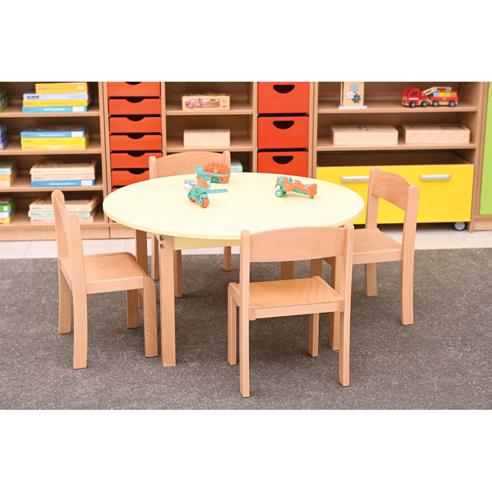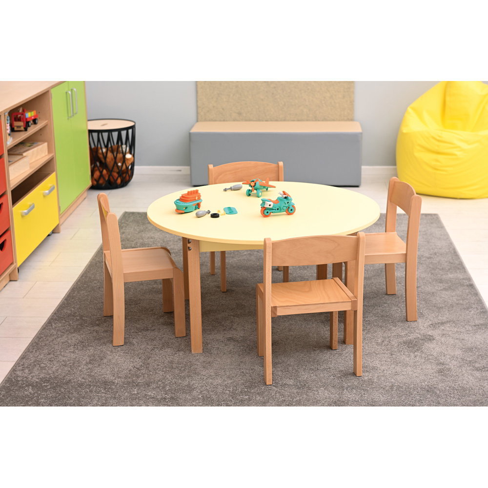 Ein harmonisch gestalteter Raum bildet die ideale Grundlage für eine positive Lern- und Spielatmosphäre. Die runde Tischplatte Pascal mit einem kompakten Durchmesser von 100 Zentimetern fügt sich dank ihres schlichten und durchdachten Designs nahtlos in jede Einrichtung ein. Ob im Kindergarten, im Hort oder in vielseitig genutzten Betreuungsräumen – dieser Tisch schafft sofort einen einladenden Ort des Zusammenkommens. Die runde Form fördert die offene Kommunikation, da sich alle Kinder am Tisch direkt ansehen können. Das erleichtert gemeinsame Spiele, kreative Bastelprojekte und das tägliche Essen ungemein.