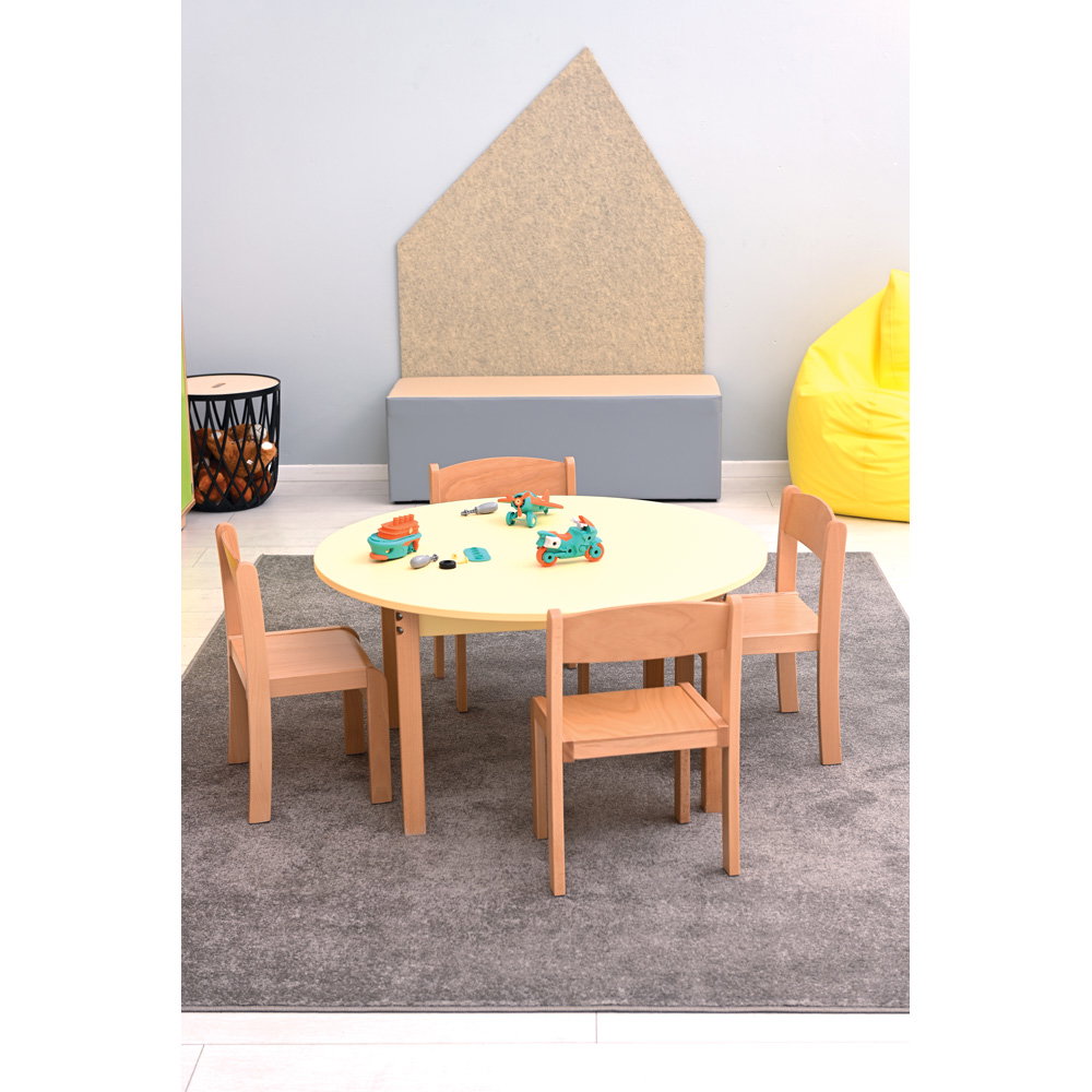 - Kommunikatives Design: Die runde Form (Ø 100 cm) bringt Kinder auf natürliche Weise zusammen und fördert den direkten Austausch.