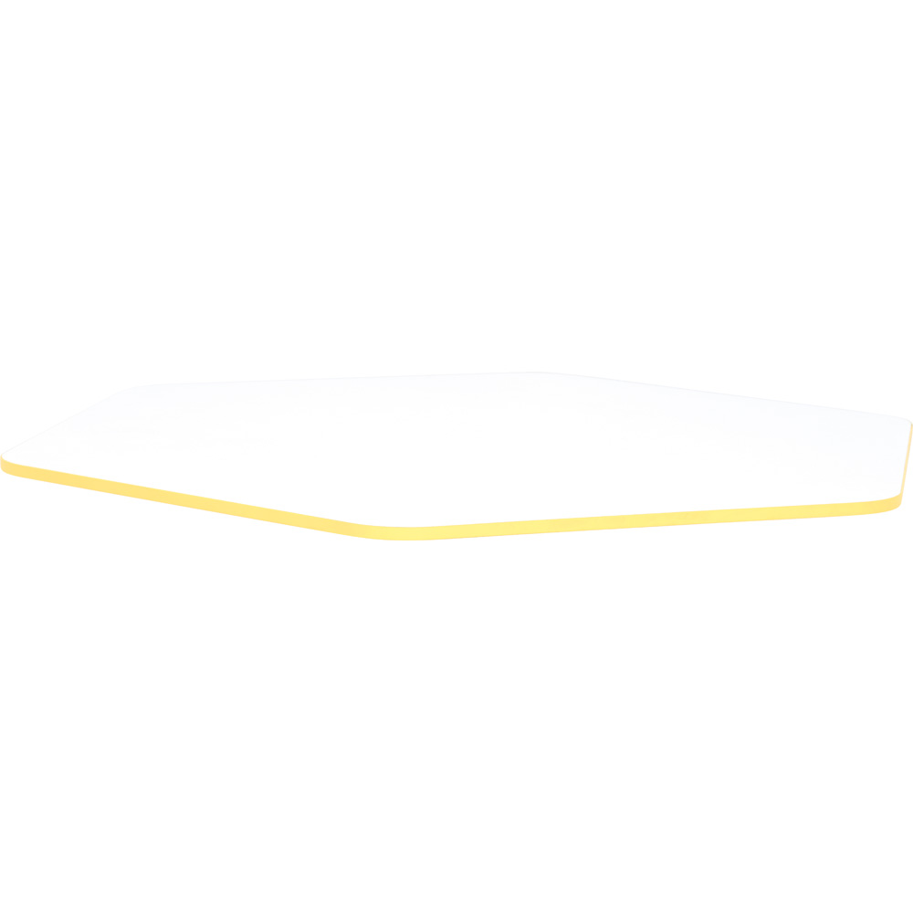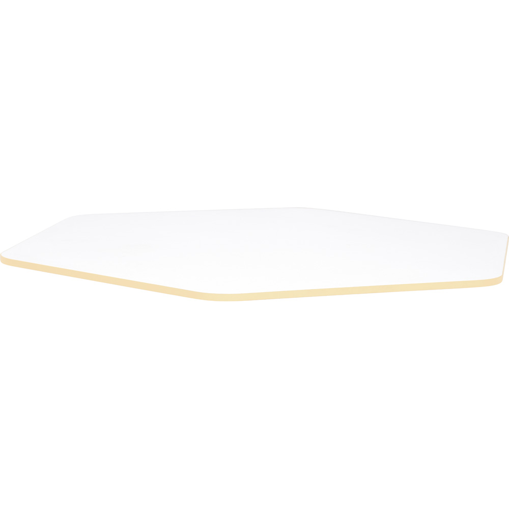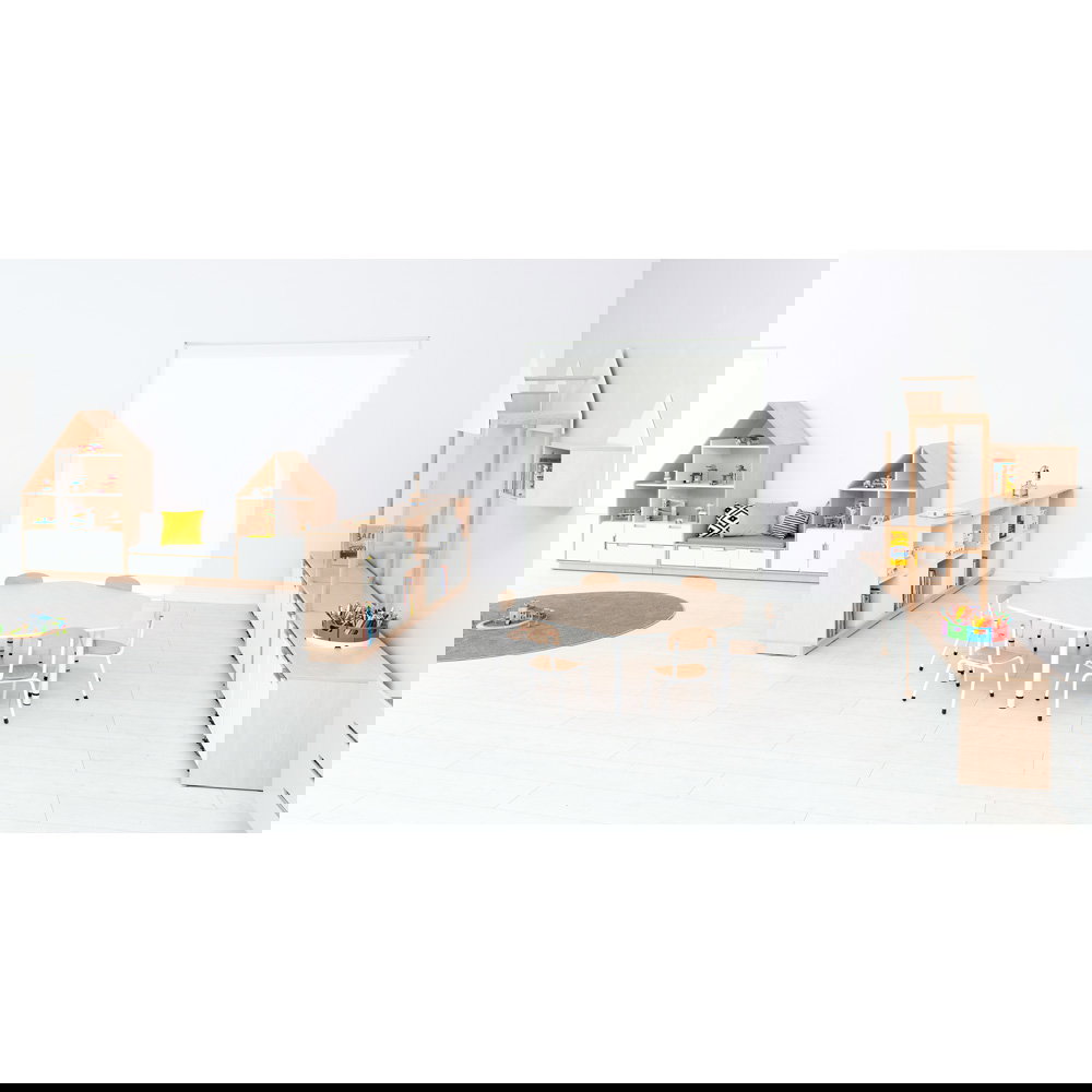 Die Basis dieses hochwertigen Möbels ist eine 18 Millimeter starke, laminierte Spanplatte. Sie widersteht den täglichen Herausforderungen im lebhaften Bildungsalltag mühelos und lässt sich leicht reinigen. Sie haben die Wahl zwischen einem hellen, klaren Weiß oder einer warmen, natürlichen Ahorn-Optik. Wir legen größten Wert auf die Sicherheit Ihrer Schützlinge: Die Tischplatte ist umlaufend mit einer zwei Millimeter starken, robusten ABS-Kante ausgestattet. Das gesamte Kantenprofil ist sanft abgerundet, um Verletzungen beim unbeschwerten Toben und Spielen zuverlässig zu verhindern.