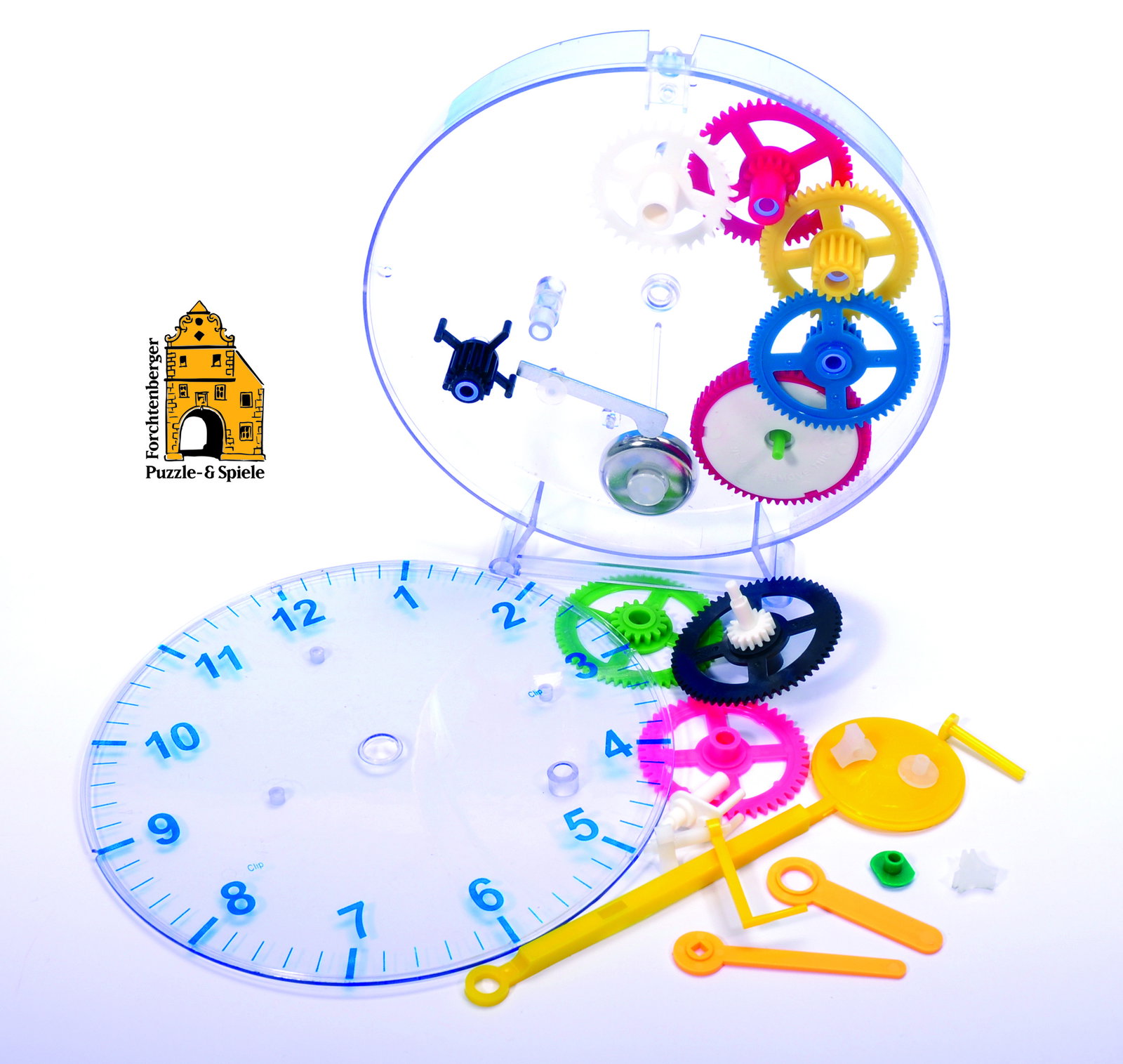 - Lernen durch Tun: Kinder begreifen physikalische Zusammenhänge am besten, wenn sie sie anfassen können. Beim Zusammenbau sehen sie direkt, wie die Kraft von der Feder über verschiedene Übersetzungen bis zu den Zeigern übertragen wird.