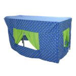 Verzaubern Sie die Spielzeit mit dem großzügigen Tischzelt von Eduplay, das im Handumdrehen jeden Tisch in eine geheimnisvolle Räuber-Höhle verwandelt! Einfach über den Tisch geworfen, entsteht für die Kleinen ein magischer Rückzugsort in lebendigen Blau- und Grüntönen, punctiert mit fröhlichen grünen und weißen Punkten. Dieses Stoffzelt, ausgestattet mit verspielten Fenster-Vorhängen und einem einladenden Eingang, simuliert ein Minihäuschen für aufregende Abenteuer und kuschelige Ruhepausen. Ob offen, um das Geschehen zu beobachten, oder geschlossen für geheime Missionen – die Vorhänge bieten Spielraum für die Fantasie. Und wenn es Zeit für’s Abendessen ist, lässt sich das Zelt in Sekundenschnelle zusammenfalten und verräumen. Ideal für Tischmaße von 80 x 120 x 60 cm und einfach per Handwäsche zu reinigen.