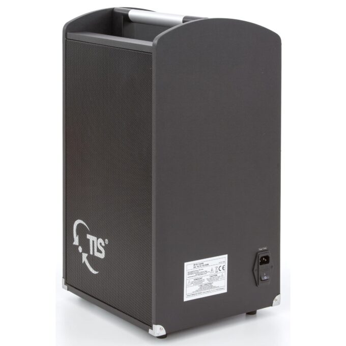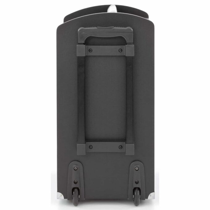- Einfache Mobilität: Die Verstärkerbox ist mit einem integrierten Trolley-System ausgestattet. Rollen und der ausziehbare Griff erleichtern den Transport, während das kompakte Design Platz spart.