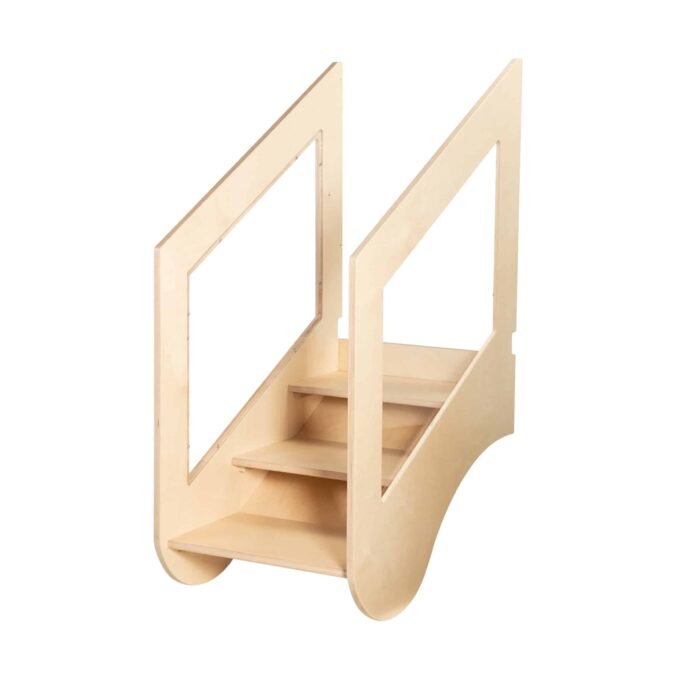 Diese hochwertige Treppe ist speziell für den Einsatz in Kindergärten und Spielbereichen entwickelt. Die stabilen Seitenwangen aus Birke Multiplex sind farbig gebeizt und sorgen für Langlebigkeit und eine attraktive Optik. Die Sicherheit wird durch den Seitenschutz und die Acrylglas-Füllungen gewährleistet, sodass pädagogische Aufsichtspersonen die Kinder stets im Blick behalten können.