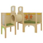 Diese Spiellandschaft überzeugt durch hochwertige Materialien wie Birke Multiplex, Buche Formholz und Fichte Massivholz, die 2-fach lackiert und farbig gebeizt sind. Der durchkrabbelbare Tunnel und die verschiedenen Sensorikelemente fördern die motorischen Fähigkeiten und die sensorische Entwicklung der Kinder.