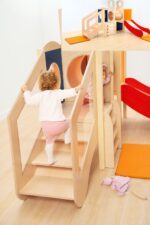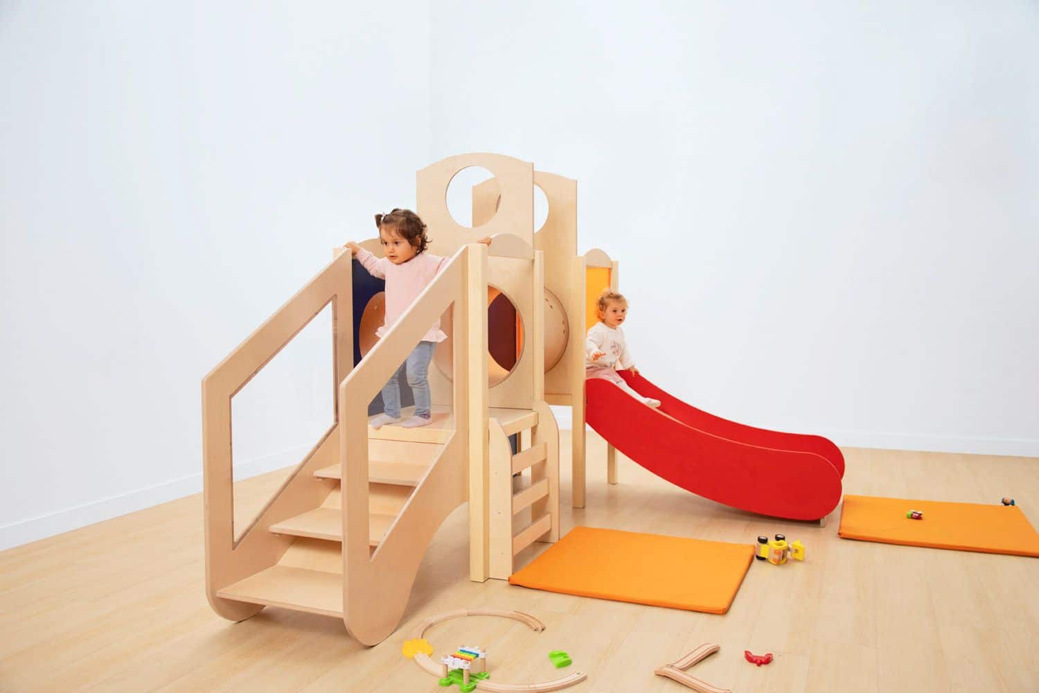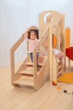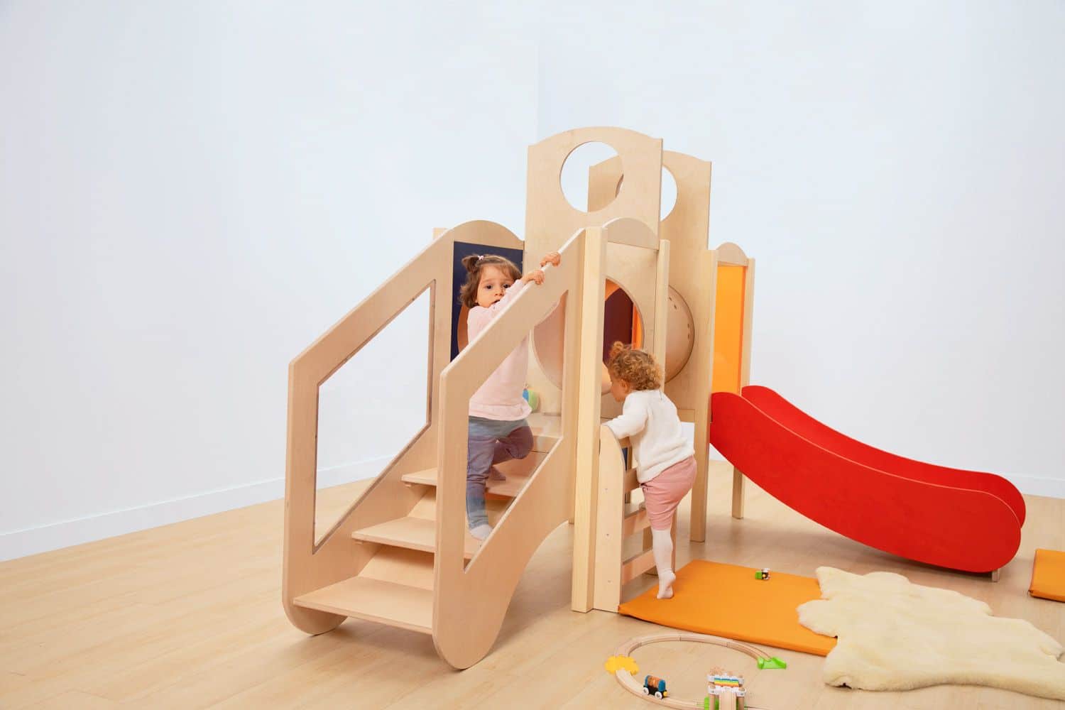 Diese hochwertige Spiellandschaft aus robustem Birke Multiplex, Buche Formholz und Fichte Massivholz bietet eine langlebige und sichere Spielumgebung. Die 2-fach lackierten und farbig gebeizten Oberflächen sorgen für eine attraktive Optik und leichte Reinigung. Die Eckaufstellungsmöglichkeit macht sie ideal für jede Raumecke und schafft dabei viele Spieloptionen.