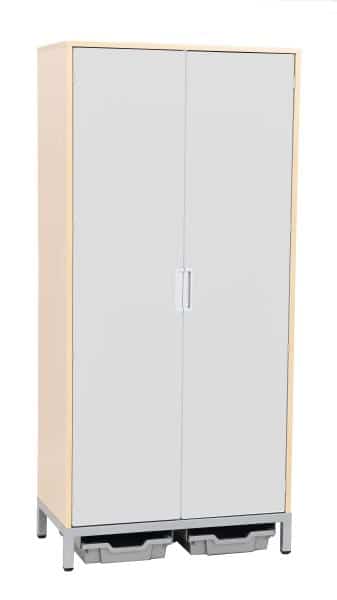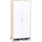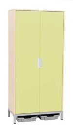 Unter dem Schrank befinden sich zwei flache Kunststoffbehälter in Silber, die als Abtropfauffang dienen. Sie sorgen dafür, dass überschüssige Flüssigkeit effektiv gesammelt wird, sodass der Boden sauber und trocken bleibt. Die Türen des Schranks sind aus folierter MDF-Platte gefertigt und in verschiedenen Farben erhältlich, darunter Weiß, Grün und Grau. So lässt sich der Schrank perfekt an das Farbkonzept Ihres Raumes anpassen.
