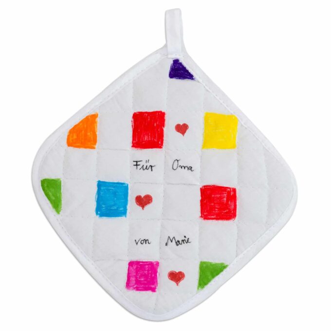 - Zeitlose Erinnerungsstücke: Einmal mit einzigartigen Designs verziert, werden diese Topflappen zu praktischen und zugleich sentimentalen Präsenten, die die Erinnerungen an die kreative Arbeit des Schöpfers bewahren.