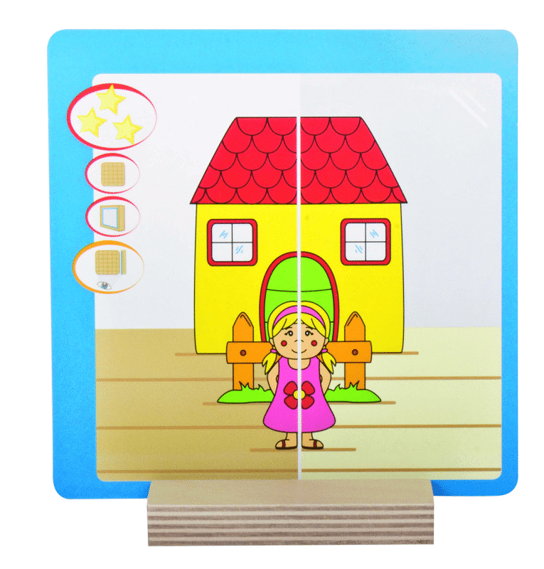 Das Set enthält 68 Teile und bietet 3 verschiedene Schwierigkeitsstufen, sodass Kinder mit unterschiedlichen Lernfortschritten gefordert werden. Die mit Liebe gestalteten Spielkarten regen zur Selbstkontrolle an, indem sie auf der Rückseite den Kindern zeigen, wie die korrekten Szenen aussehen können.