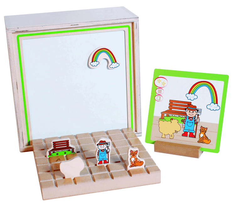 Mit ToPoLoGo „Visio“ lernen Kinder, wie sich Bilder im dreidimensionalen Raum verhalten. Begriffe wie „daneben“, „dahinter“ und „davor“ werden durch praktische Erfahrungen erlernt, während sie die verschiedenen Szenen aus den Spielkarten nachlegen. Das fördert nicht nur das räumliche Vorstellungsvermögen, sondern auch die sprachliche Entwicklung und das Verständnis für grundlegende mathematische Konzepte.