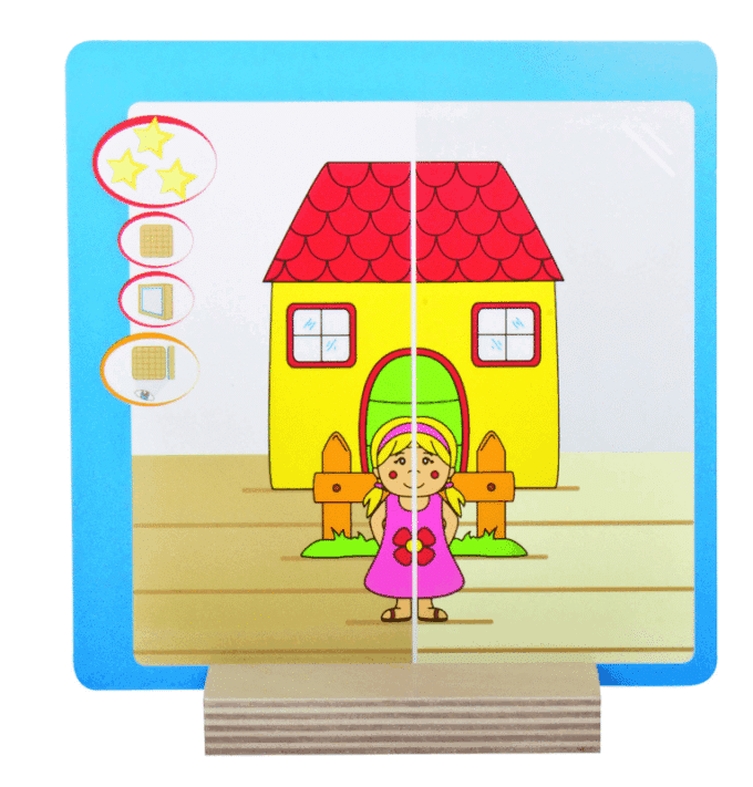 Das Set enthält 68 Teile und bietet 3 verschiedene Schwierigkeitsstufen, sodass Kinder mit unterschiedlichen Lernfortschritten gefordert werden. Die mit Liebe gestalteten Spielkarten regen zur Selbstkontrolle an, indem sie auf der Rückseite den Kindern zeigen, wie die korrekten Szenen aussehen können.