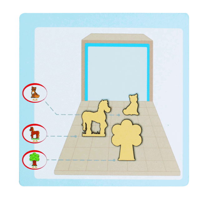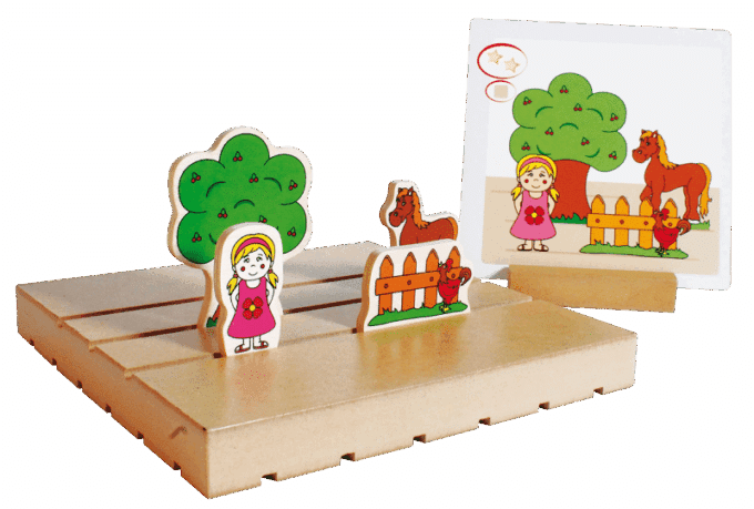 Mit ToPoLoGo „Visio“ lernen Kinder, wie sich Bilder im dreidimensionalen Raum verhalten. Begriffe wie „daneben“, „dahinter“ und „davor“ werden durch praktische Erfahrungen erlernt, während sie die verschiedenen Szenen aus den Spielkarten nachlegen. Das fördert nicht nur das räumliche Vorstellungsvermögen, sondern auch die sprachliche Entwicklung und das Verständnis für grundlegende mathematische Konzepte.