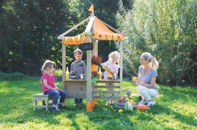 Mit dem Rollenspiel raus in die Natur! Raus in die Natur! Mit dem neuen beleduc Kiosk können die Rollenspiele jetzt nach draußen verlegt werden! Mehrere Kinder können dort gleichzeitig spielen, da das Kiosk genug Platz bietet. Hier sind viele Spiel-Möglichkeiten geboten, wie zum Beispiel ein Verkaufsstand/Markt, Kiosk, Eisdiele oder Imbiss/Schnellrestaurant. Das Spielen fördert das imitative und imaginäre Spiel, das Erzählen von Fantasy-Geschichten, das Rollenspiel und die Kreativität und es macht jede Menge Spaß. Ein Highlight für jede Einrichtung.
