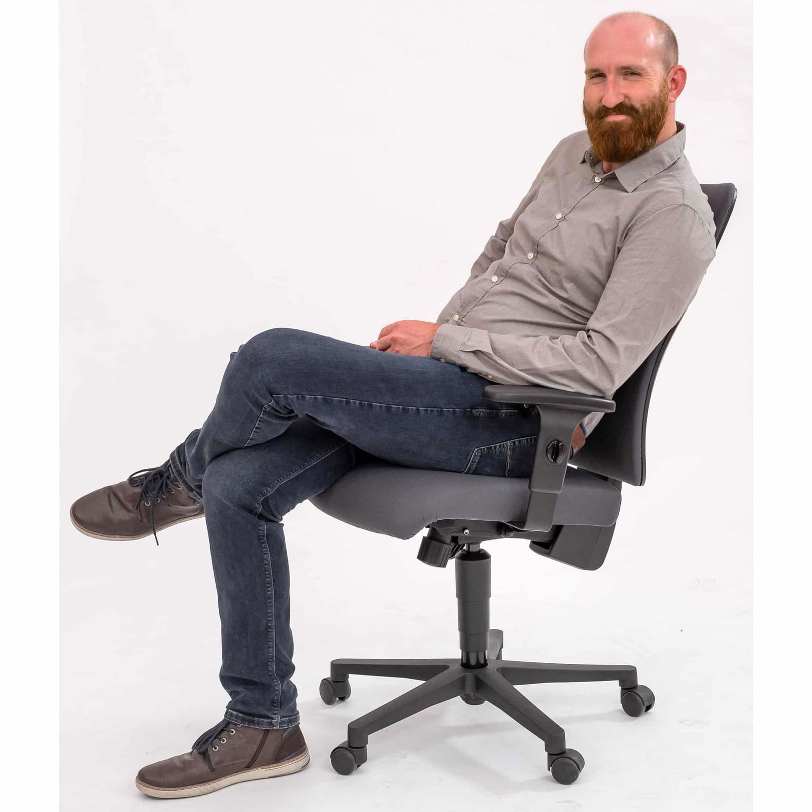 - Synchronmechanik für dynamisches Sitzen: Die Synchronmechanik passt sich Ihren Bewegungen an und sorgt dafür, dass die Neigung von Lehne und Sitz stets aufeinander abgestimmt ist – für ein gesundes und dynamisches Sitzerlebnis.
