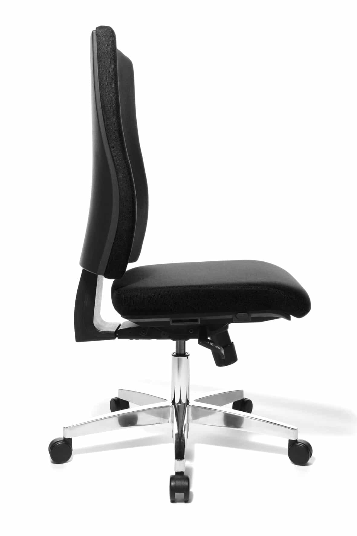 Der atmungsaktive Flachsitz mit Knierolle unterstützt eine gesunde Sitzposition und fördert damit das Wohlbefinden auch bei längerem Sitzen. Das edle Design-Aluminium-Fußkreuz in Alusilber ist nicht nur ein optischer Hingucker, sondern auch mit lastabhängig gebremsten Sicherheitsdoppelrollen speziell für Teppichböden ausgestattet, die für zusätzliche Stabilität und Sicherheit sorgen.