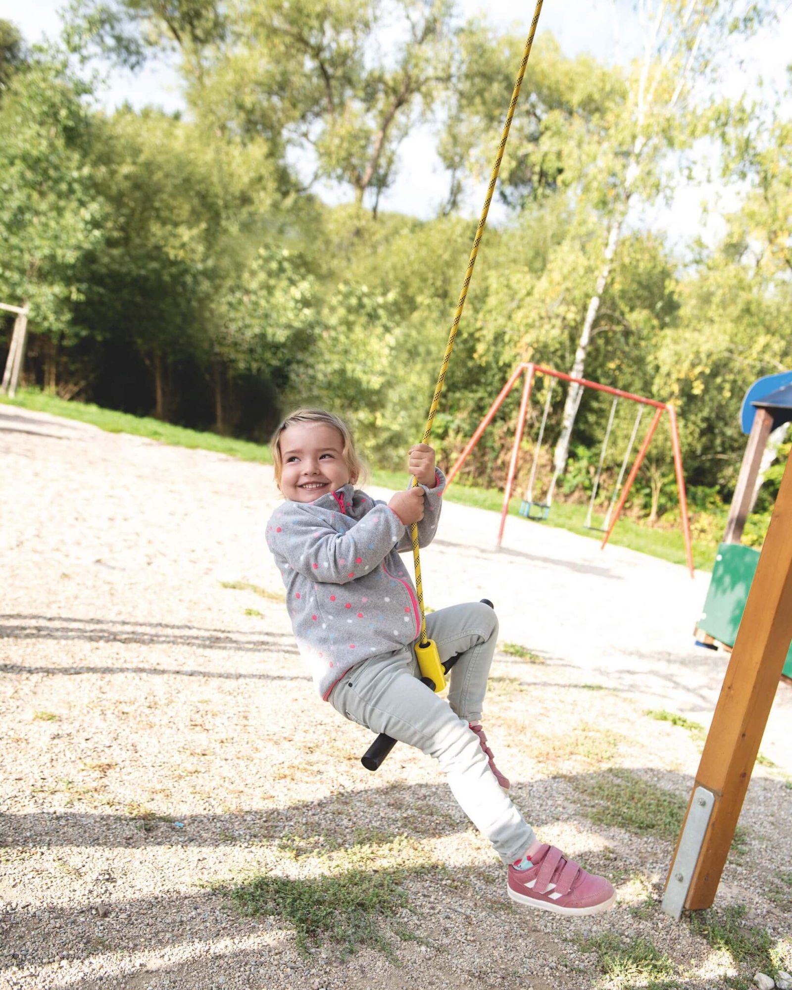 Ob als ergänzendes Element zum Klettergerüst oder als eigenständige Schaukel – der Turn & Swing fördert die physische Entwicklung und Koordination der Kinder. Lassen Sie sie drehen und schwingen, und beobachten Sie, wie Geschicklichkeit und Muskelkraft auf spielerische Art gestärkt werden!
