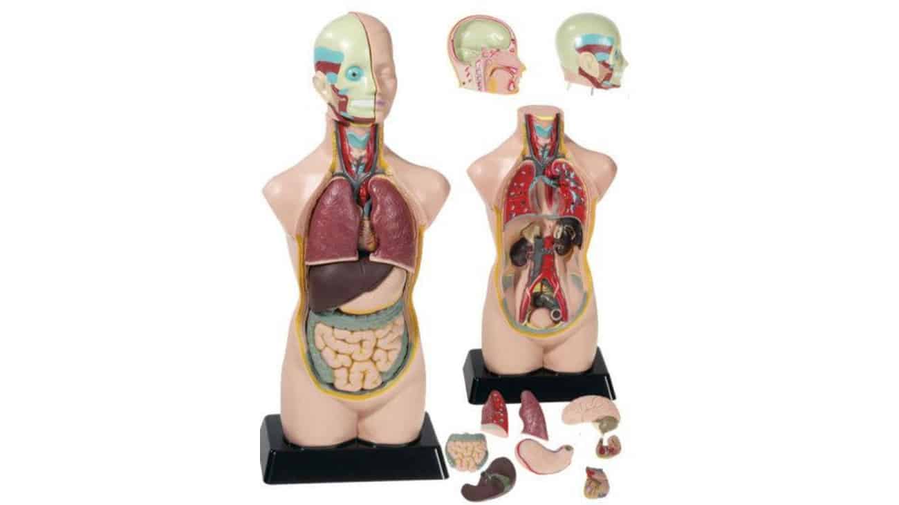 - Torso, zerlegbar in insgesamt 11 Teile (Torso, 2-teiliger Schädel und 8 entnehmbare Organe)