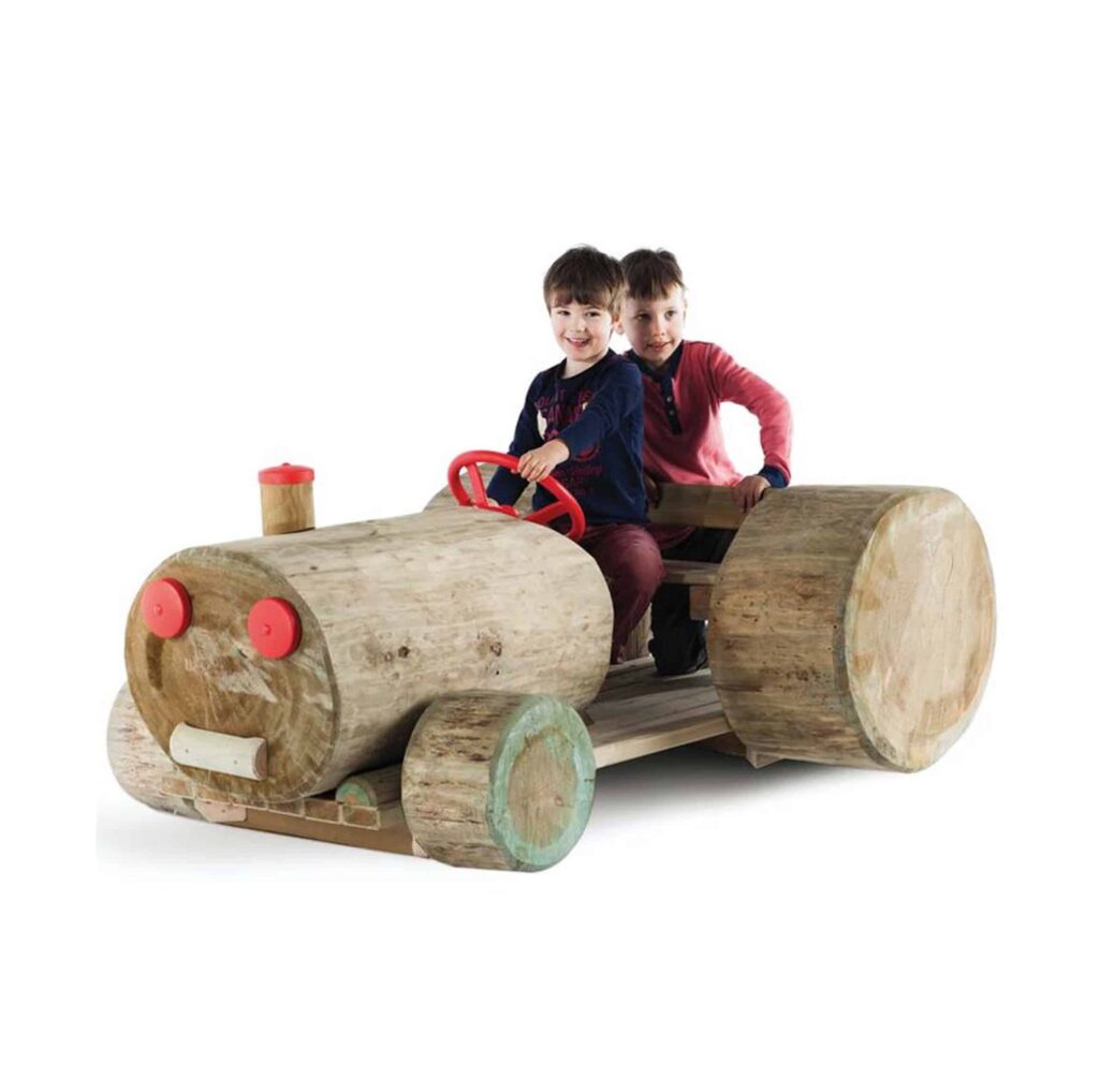 Traktor „Bulldog“ aus Kiefernholz für Kindergarten- Außenanlagen