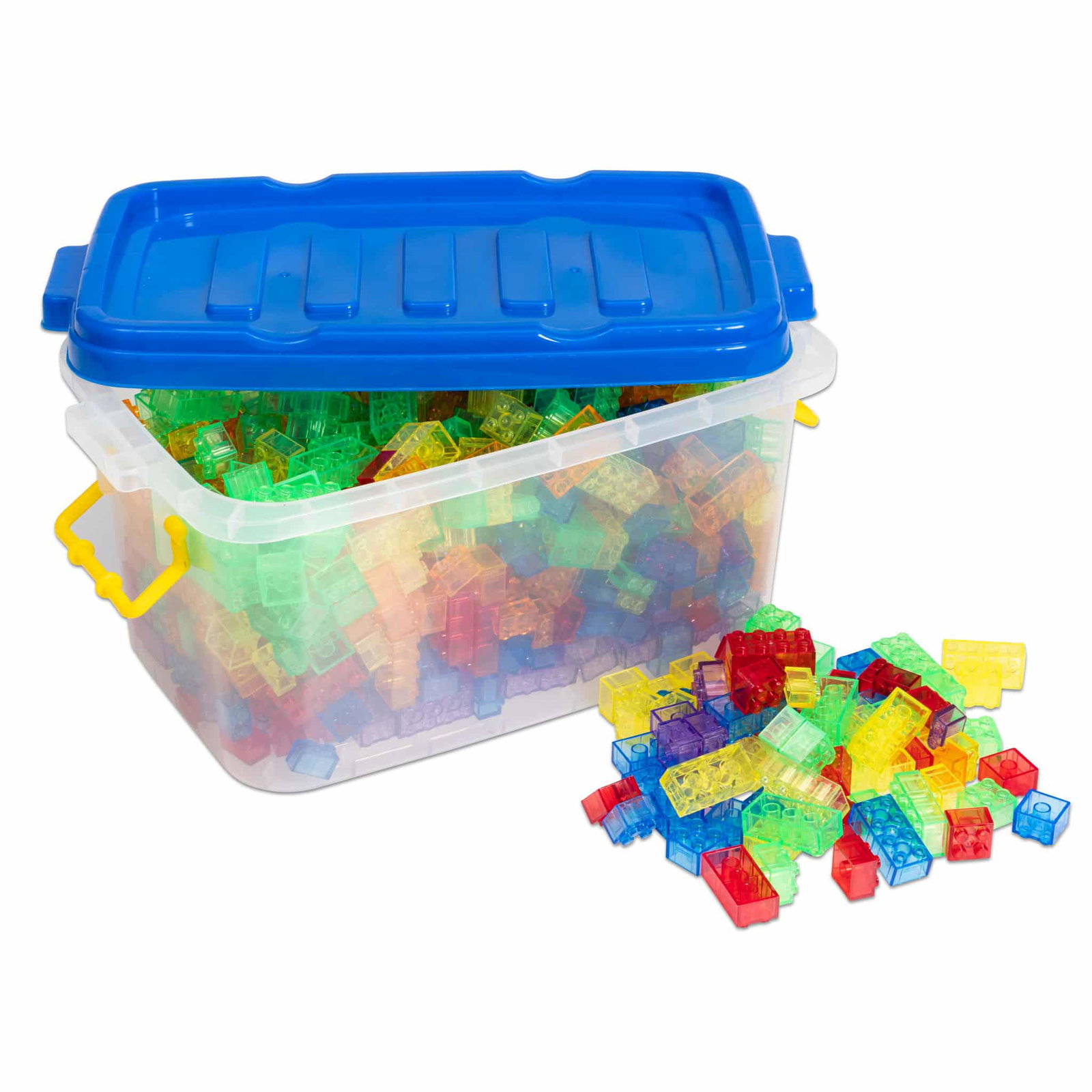 - Lieferumfang: 1000 Bausteine in 6 durchscheinenden Farben (rot, gelb, blau, grün, orange, violett)