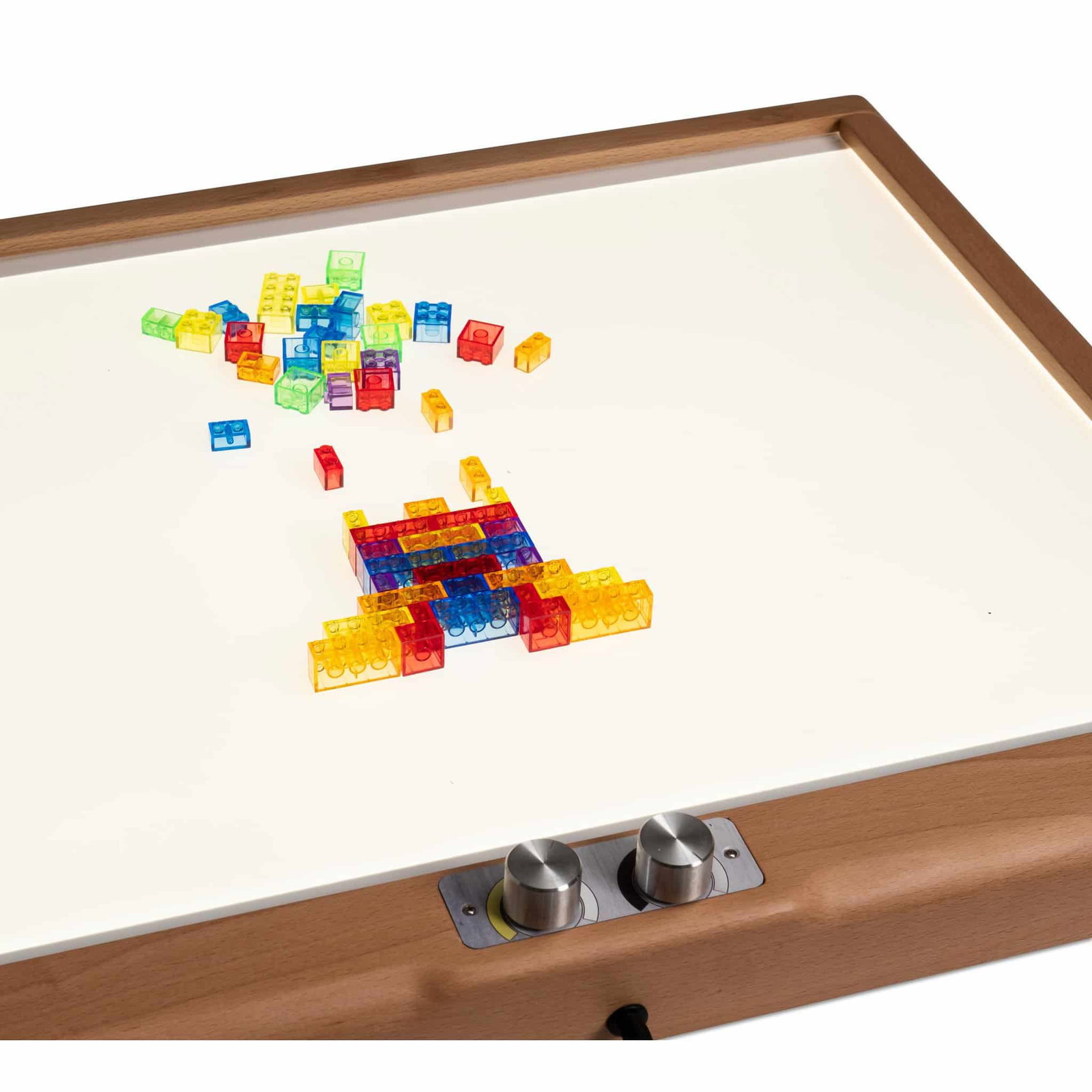 Bauen Sie die transparenten Steine auf einem Lichttisch! Das Spielen mit Licht und Farben macht das Erlebnis noch aufregender und motivierender!