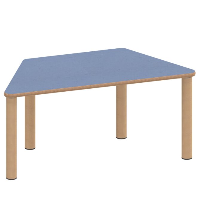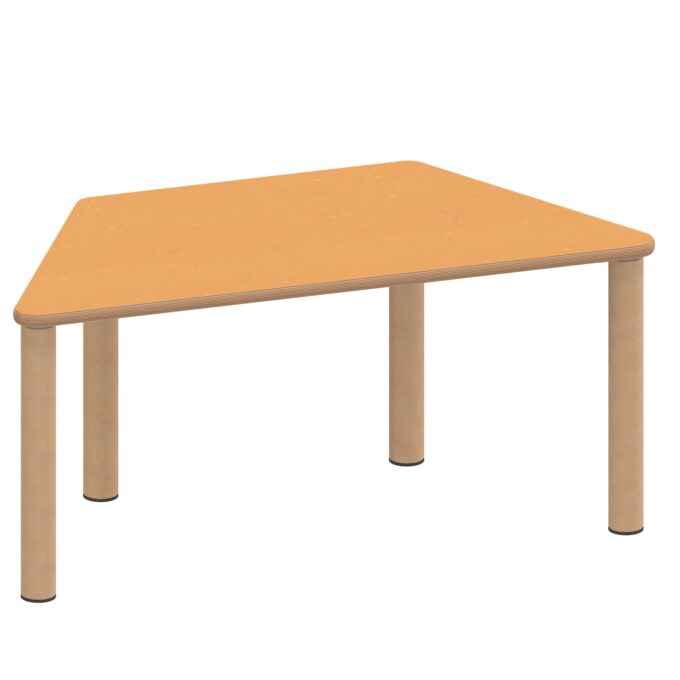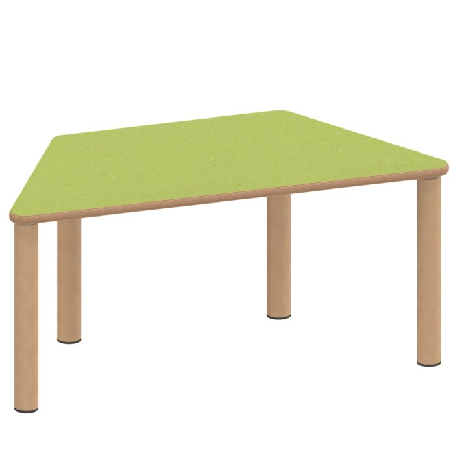 Der Trapeztisch ZALOTTI mit Linoleum-Belag und Massivholzbeinen revolutioniert moderne Krippen- und Kindergartenräume durch seine einzigartige Verbindung von geometrischer Trapezform und natürlicher Ausstrahlung. Diese außergewöhnliche zargenlose Tischkonstruktion mit 2,5 mm starkem, geräuschdämmendem Linoleum-Belag und robusten Buche-Massivholzbeinen schafft die ideale Atmosphäre für kreative Gruppenarbeit und flexible Kommunikation. Die besondere Trapezform in zwei verfügbaren Größen (120×60 cm oder 140×70 cm) ermöglicht völlig neue Raumarrangements und innovative Stellkombinationen bei gleichzeitig komfortablem Arbeitsplatz für verschiedene Gruppengrößen. Die zargenlose Bauweise bietet ungehinderte Beinfreiheit für alle Nutzer – auch für Rollstuhlfahrer. Mit acht verfügbaren Höhen von 25 bis 76 cm wächst dieser „Made in Germany“ Qualitätstisch flexibel mit den Kindern mit und schafft durch seine natürliche Holzoptik eine warme, einladende Arbeitsatmosphäre für kreatives Lernen, gemeinsame Aktivitäten oder pädagogische Projekte.