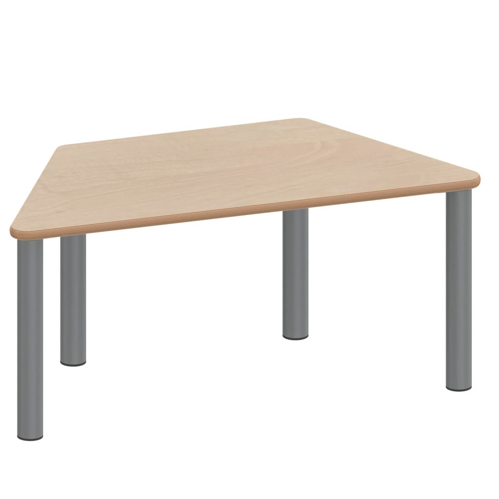 Der Trapeztisch ZALOTTI mit Schichtstoff-Belag und Stahlrohrbeinen revolutioniert moderne Arbeits- und Lernumgebungen durch seine einzigartige Verbindung von geometrischer Trapezform und industrieller Präzision. Diese außergewöhnliche zargenlose Tischkonstruktion mit unzerstörbarem 0,8 mm HPL-Schichtstoffbelag und robusten, pulverbeschichteten Stahlrohrbeinen schafft die ideale Grundlage für kreative Gruppenarbeit und flexible Kommunikation. Die besondere Trapezform in zwei verfügbaren Größen (120×60 cm oder 140×70 cm) ermöglicht völlig neue Raumarrangements und innovative Stellkombinationen bei gleichzeitig komfortablen Arbeitsplätzen für verschiedene Gruppengrößen. Die zargenlose Bauweise bietet ungehinderte Beinfreiheit für alle Nutzer – auch für Rollstuhlfahrer. Mit acht verfügbaren Höhen von 25 bis 76 cm wächst dieser „Made in Germany“ Qualitätstisch flexibel mit den Anforderungen mit und schafft durch seine industrielle Ästhetik eine professionelle, moderne Arbeitsatmosphäre für kreatives Lernen, gemeinsame Aktivitäten oder innovative Besprechungsformate.