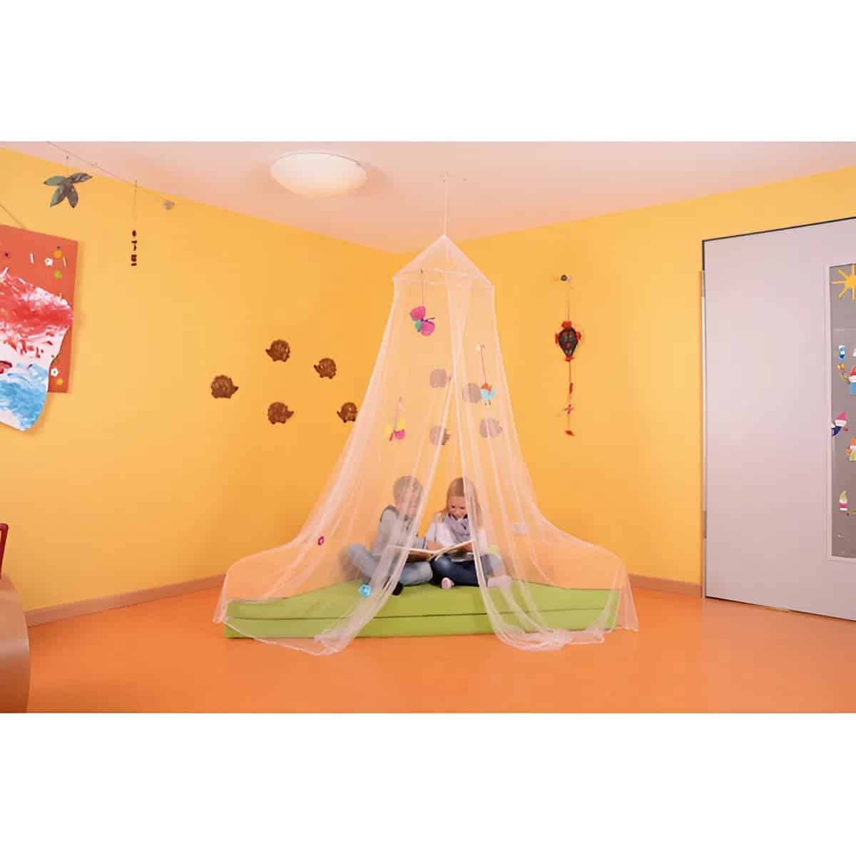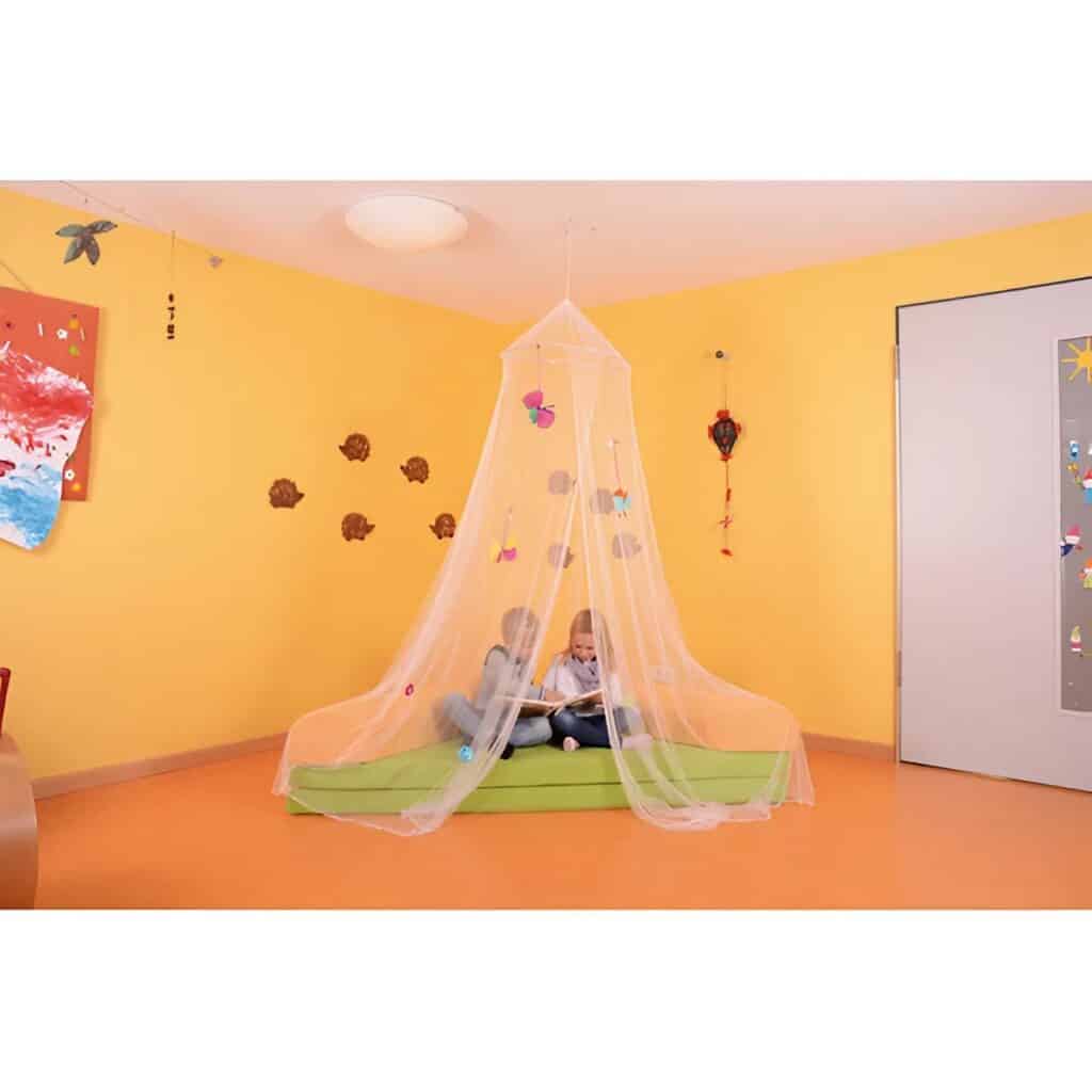 - Magische Spielhöhle: Über eine Kuschel- oder Leseecke gehängt, verwandelt der Schleier den Bereich in eine geheimnisvolle Höhle, ein Prinzessinnenschloss oder ein gemütliches Versteck – der perfekte Rückzugsort zum Träumen, Lesen und Spielen.