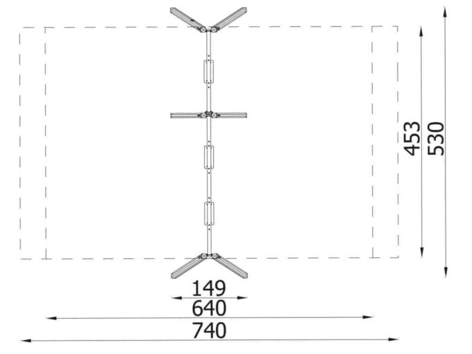 • Geräte-Abmessungen LxBxH: 149 x 530 x 228 cm