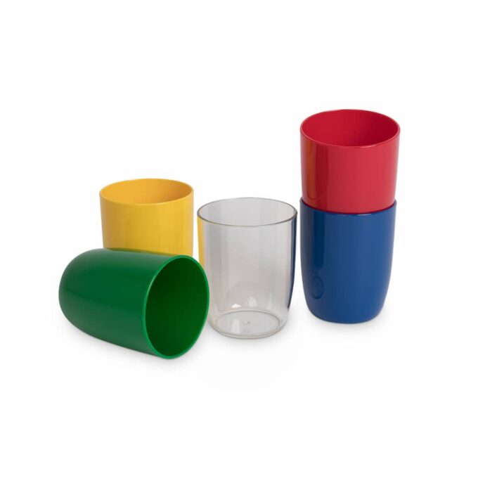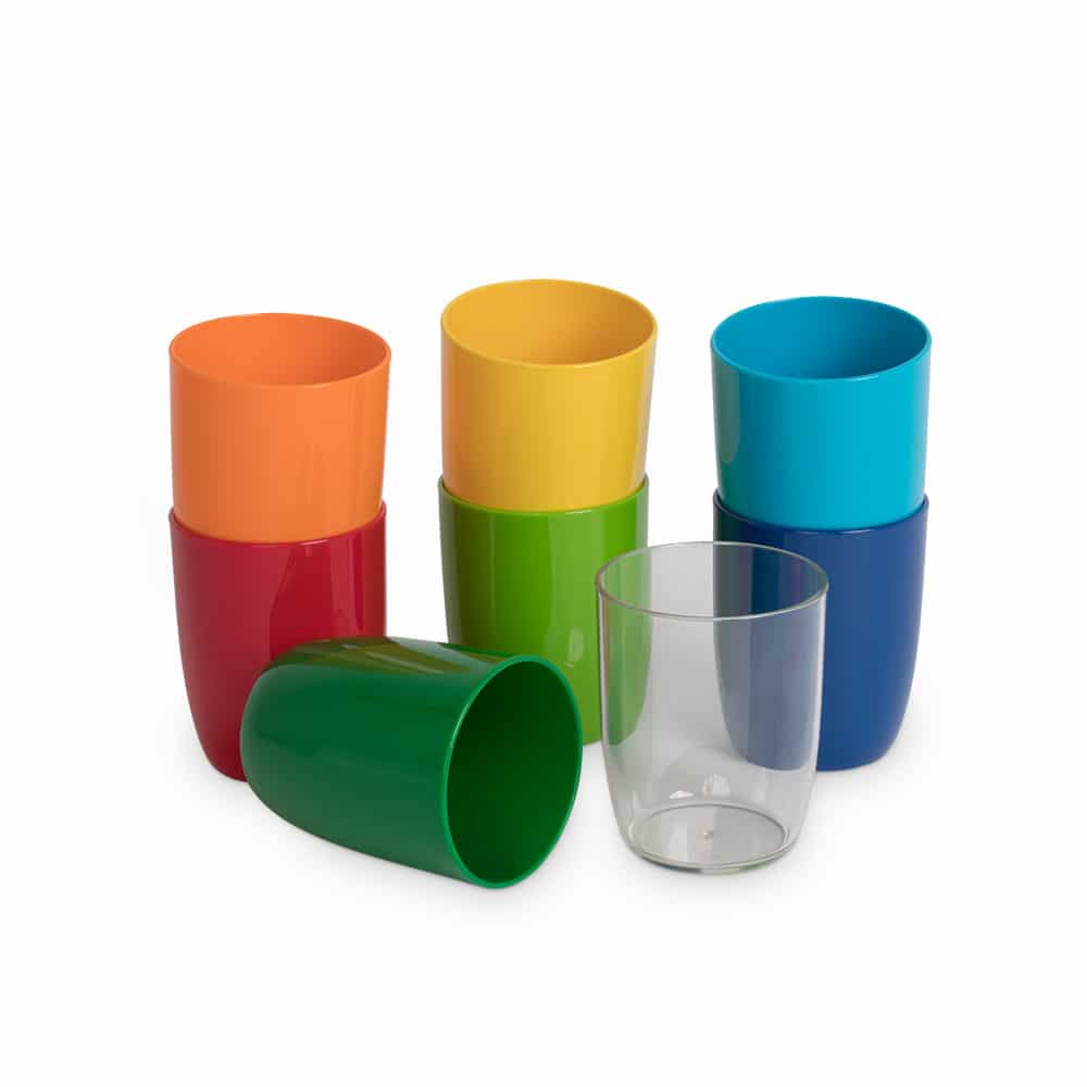 Der Trinkbecher besteht aus hochwertigem Polycarbonat (PC), einem Material, das speziell für den Kontakt mit Lebensmitteln konzipiert wurde. Im Vergleich zu Glas oder Melamin ist PC nicht nur langlebiger und robuster, sondern auch leichter. Damit ist der Becher ideal für kleine Kinderhände geeignet, die einen sicheren und praktischen Umgang benötigen.