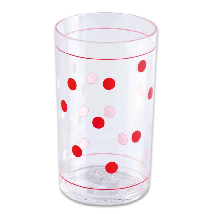 - Verspieltes Polka-Dot-Muster: Das fröhliche rot-transparente Design bringt Farbe auf den Tisch und wird schnell zum Favoriten von Kindern und Eltern.