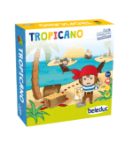 Erlebe das aufregende Abenteuer von Tropicano! Dieses fesselnde Würfelspiel für 2 bis 4 Spieler ab 5 Jahren entführt Ihre kleinen Piraten auf eine spannende Schatzsuche. Wer wird die erste Brücke zur Schatzinsel bauen und sich den verborgenen Schatz unter der Palme sichern?