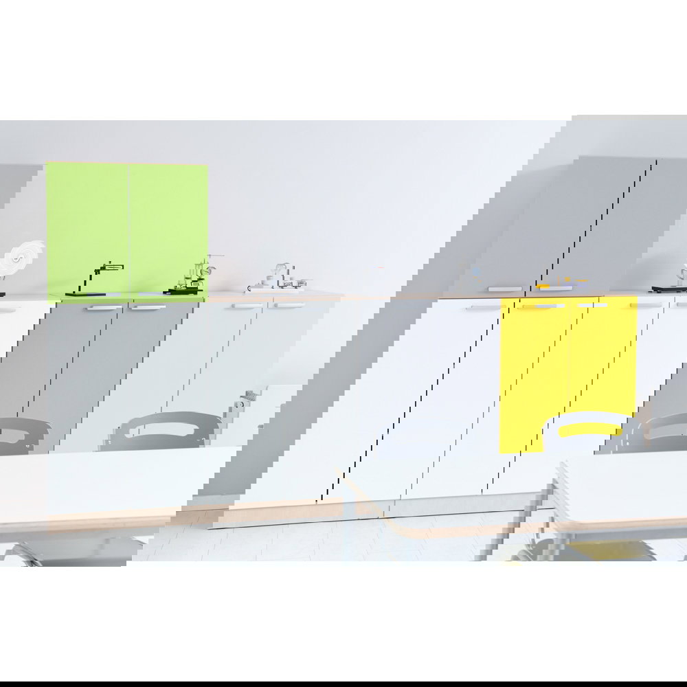 Geschlossene, durchgehende Fronten bringen sofort Ordnung und Professionalität in jeden Raum. Verstecken Sie Ordner, Bücher und Materialien elegant hinter den Türen und genießen Sie eine aufgeräumte, konzentrationsfördernde Umgebung. - Wählen Sie die perfekte Öffnungsmechanik