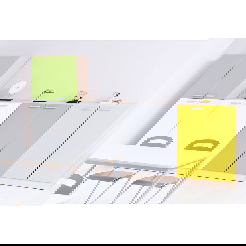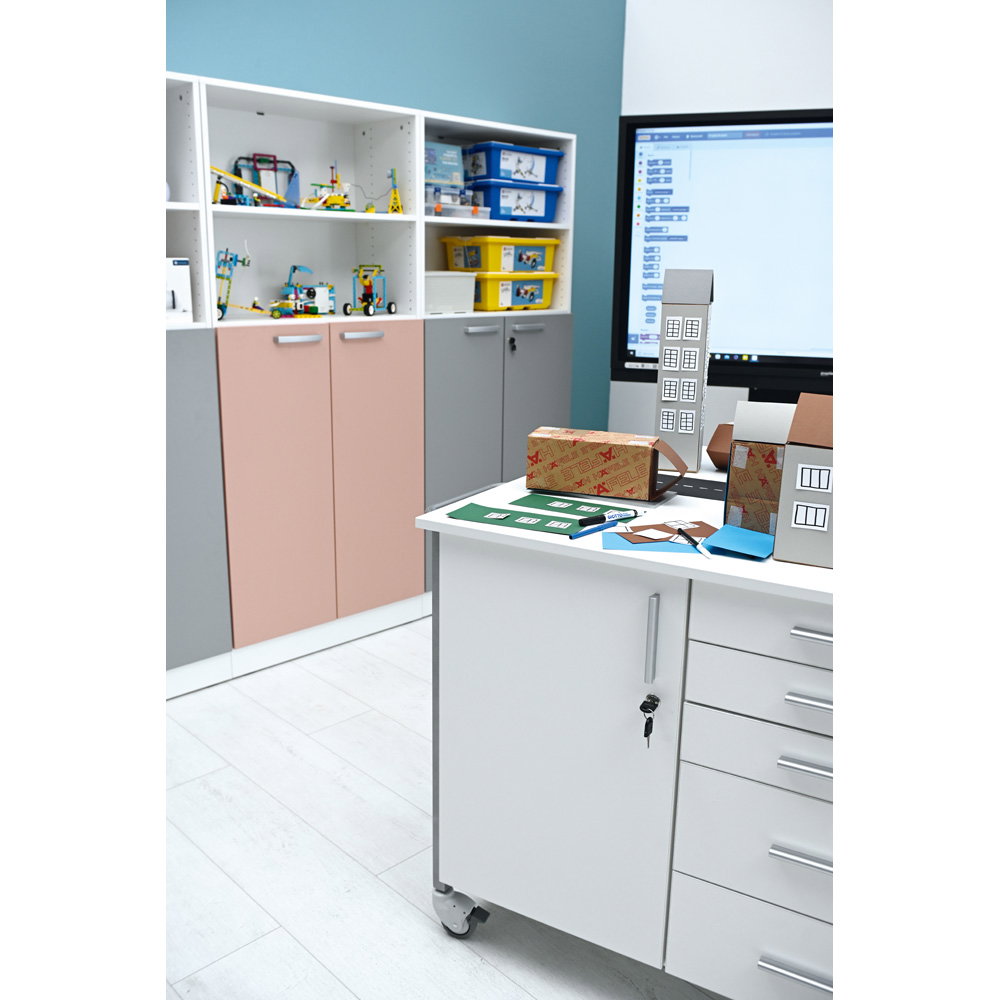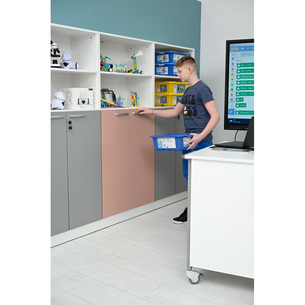 Diese Türen sind aus 18 mm starker, laminierter Spanplatte gefertigt, was sie besonders widerstandsfähig gegen Kratzer und Stöße macht. Sie sind für die hohen Anforderungen im Schul- und Büroalltag konzipiert und garantieren eine lange Lebensdauer.