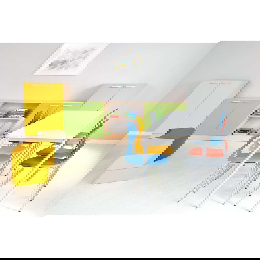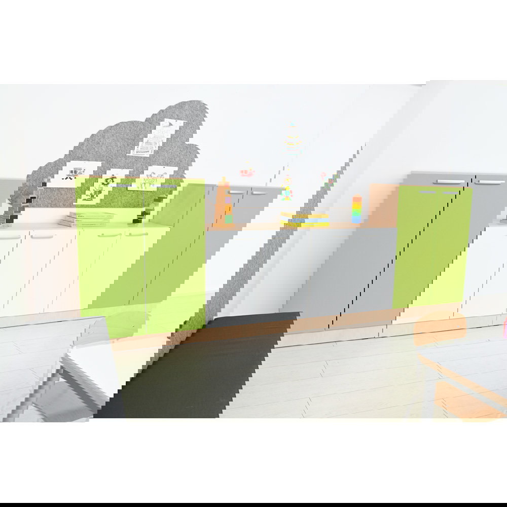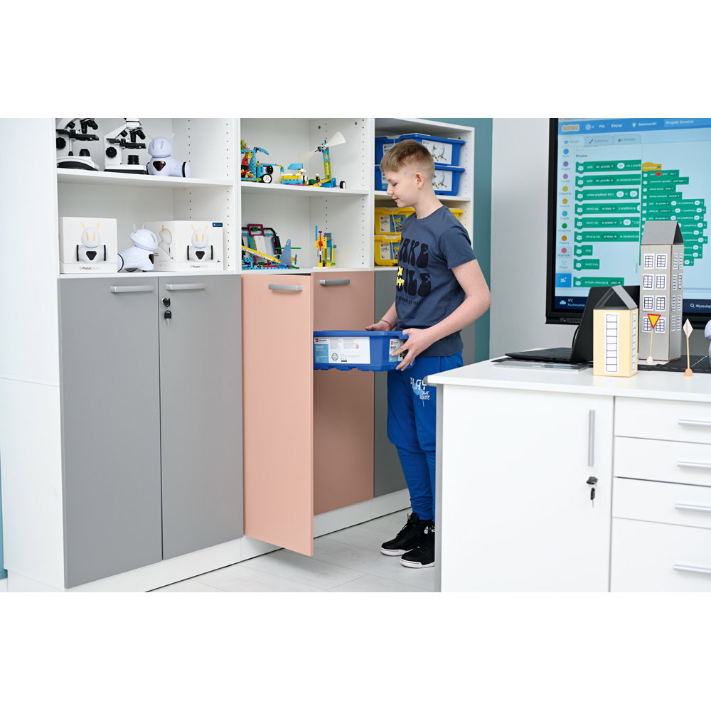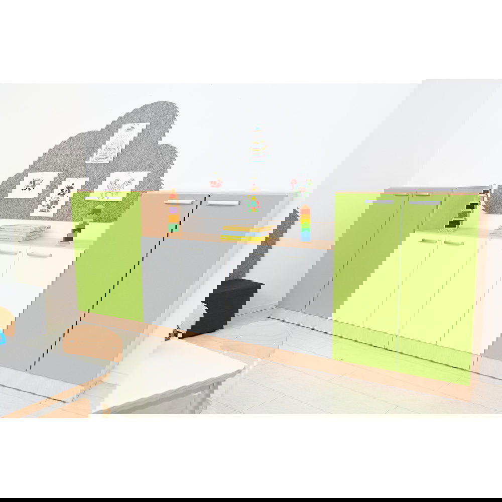 Diese Türen sind aus 18 mm starker, laminierter Spanplatte gefertigt, was sie besonders widerstandsfähig gegen Kratzer und Stöße macht. Sie sind für die hohen Anforderungen im Schul- und Büroalltag konzipiert und garantieren eine lange Lebensdauer.