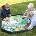 Dank der robusten Materialqualität ist die Einlegematte vielseitig einsetzbar – sie kann mit Wasser, Sand, Erde oder anderen Materialien bespielt werden. So bleibt das Kinderzimmer oder der Klassenraum stets sauber, und die Kinder können sich ohne Sorge kreativ austoben. Die Matte eignet sich hervorragend, um Kinder dazu zu ermutigen, eigene Rollenspiele zu erfinden und spielerisch soziale Fähigkeiten sowie Teamarbeit zu entwickeln.