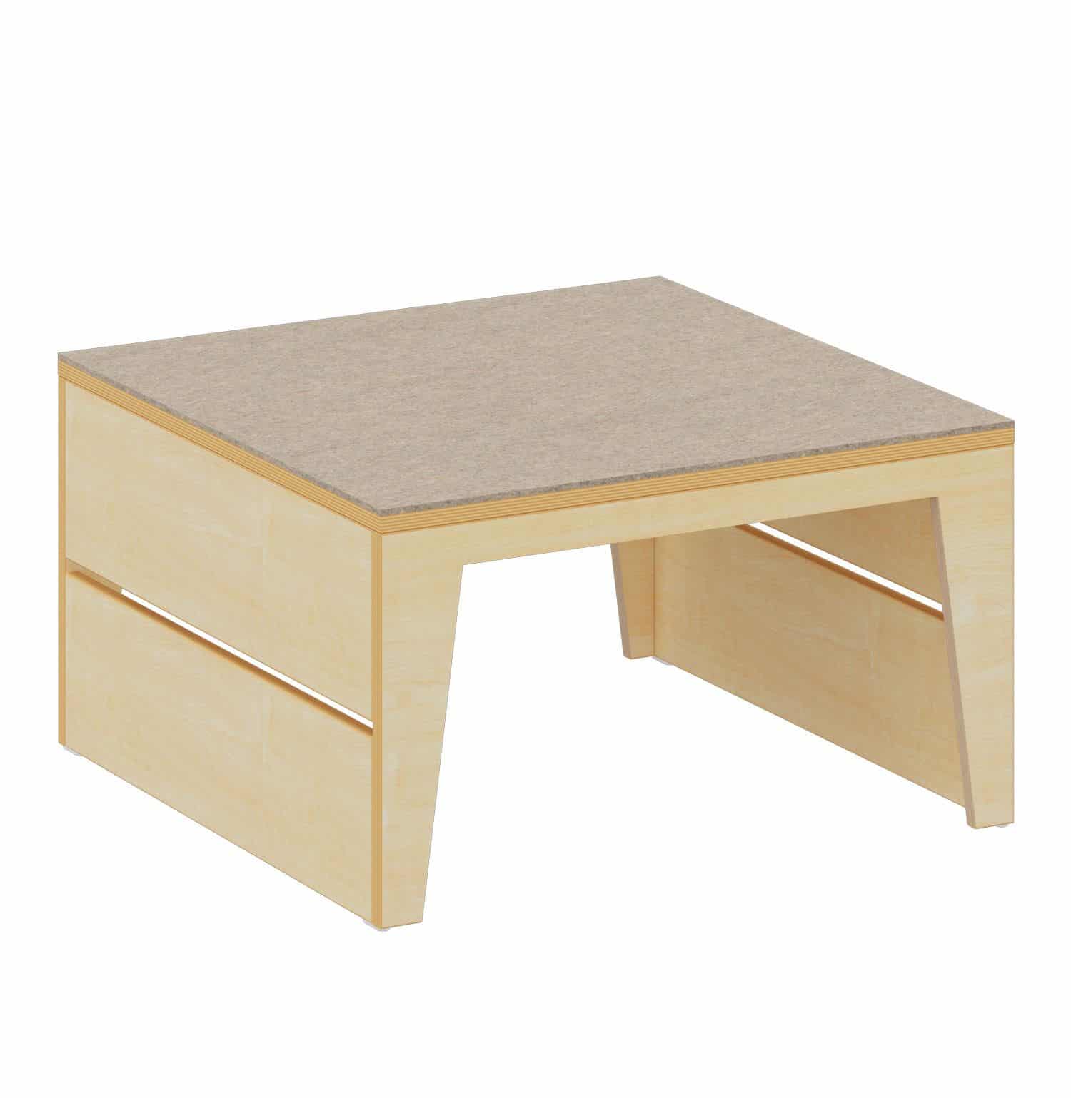 Dank der seitlichen Schlitze für leichtes Greifen und Tragen lässt sich das Podest mühelos bewegen und an unterschiedliche Spielsituationen anpassen. Es bietet Kindern eine sichere und stabile Plattform zum Spielen, Klettern und Entdecken.