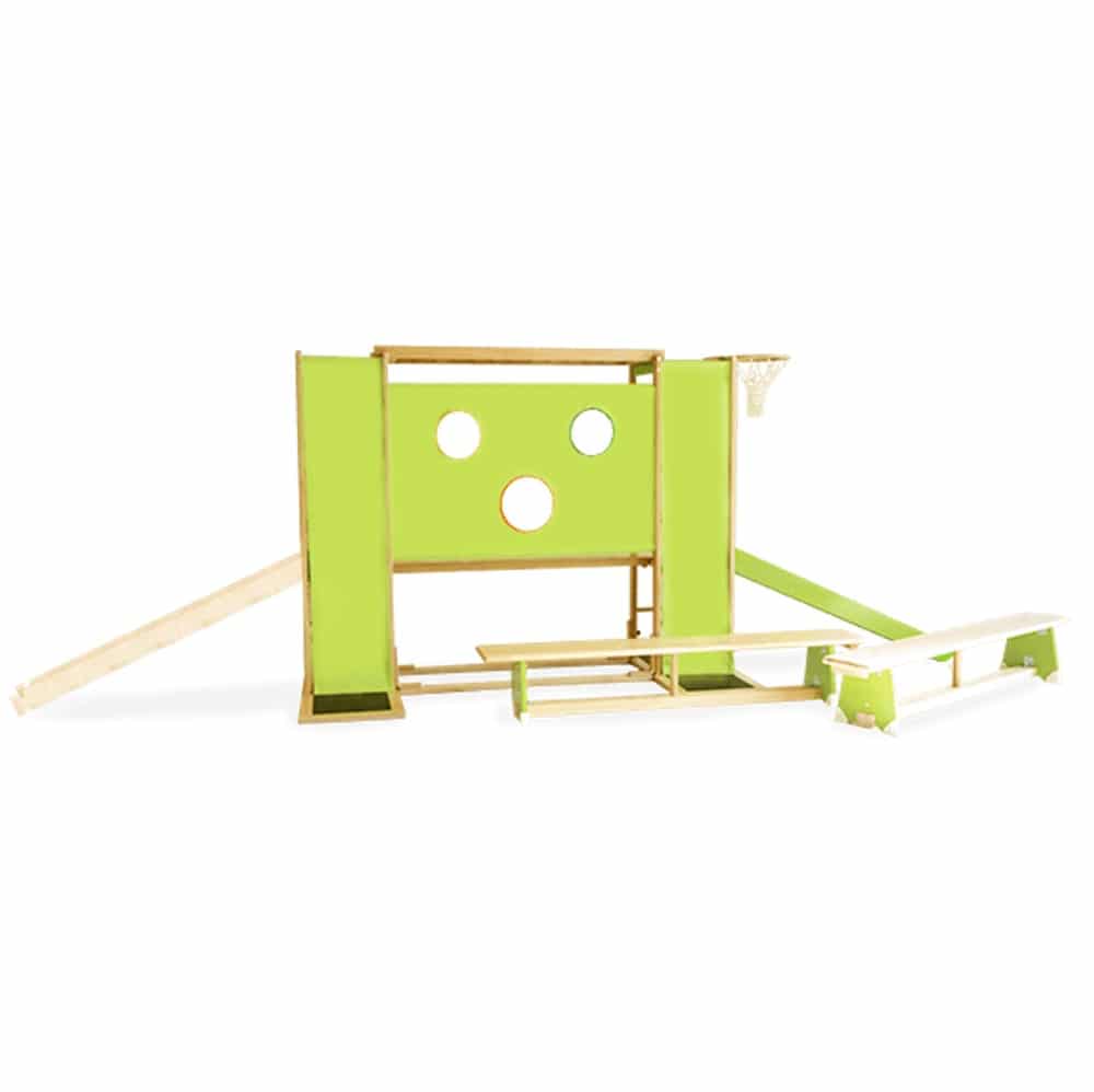 Maximaler Spass mit der Klettersechseck Variante 2 – viel Bewegungsmöglichkeiten und Geschicklichkeitstraining – auf minimalem Platz