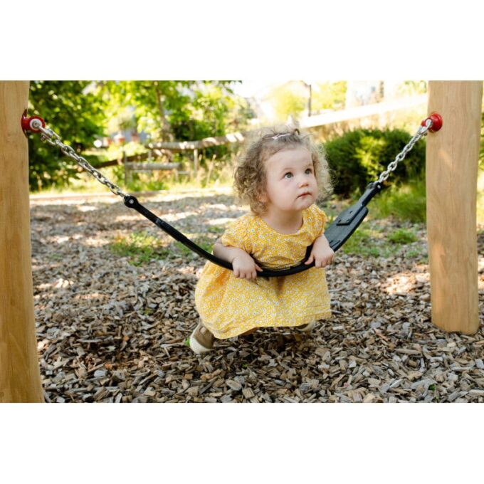 Nur Fliegen ist schöner! Auf dem Bauch liegend schweben Kinder ganz nah über dem Boden. So können sie sich mit ihren Händen oder den Füßen selbst abstoßen und erste Schaukelerfahrungen machen. Durch die geringe Fallhöhe ist das für die ganz Kleinen ein unbeschwertes und sicheres Vergnügen. Natürlich kann man im Gurt auch sitzen oder liegen.