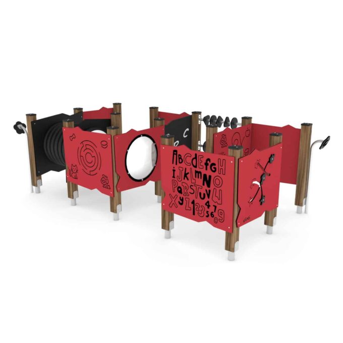 - Seitenwände aus strapazierfähiger HDPE- oder HPL-Platte, witterungsbeständig, Lernwände und bewegliche Elemente aus HDPE- oder HPL-Platte, witterungsbeständig,